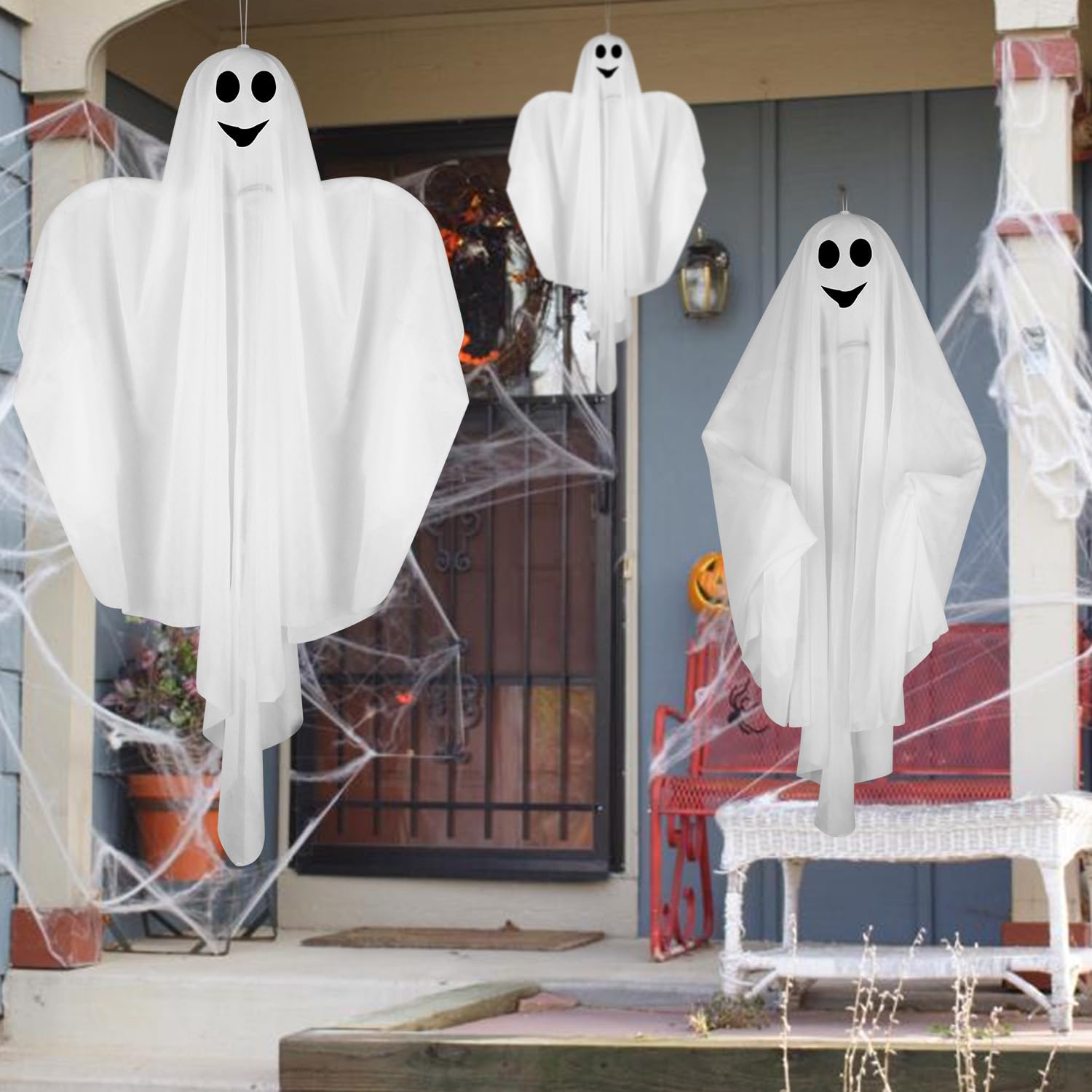 JOYIN Lot de 2 fantômes lumineux à suspendre pour Halloween avec Le Forfait Comprend : Vous recevrez 2 pièces de lumières fantômes led blanc chaud. Fantôme Tissu Nylon Durable Imprimé Décoration Halloween Fantôme, 2 Pièces Décoration Fantôme à Décoration Fantôme Halloween Ils peuvent s'allumer et rempliront votre nuit d'halloween d'une atmosphère mystérieuse et effrayante. Matériau de Haute Qualité]:Décorations d'Halloween fabriquées en tissu non tissé et avec des ventouses en plastique.La texture du tissu non tissé confère au crâne un aspect tridimensionnel.Décoration Halloween Fantôme La ventouse peut être appliquée sur diverses surfaces lisses pour une décoration plus durable.Qu'il s... Description de Guirlande d'Halloween 2 pièces avec fantômes suspendus. Décoration pour Halloween. Décoration fantôme d'Halloween : Cette jolie décoration fantôme est la décoration effrayante à suspendre pour vos murs et portes, apportant une touche d'Halloween à votre maison. Instructions : Ce kit fantôme est un excellent projet pour les amoureux ou toute personne souhaitant s... Les décorations lumineuses fantômes peuvent être utilisées à chaque halloween. Il y a deux tissus orange, 2 lumières led, 2 capots fixes et 2 cordes. Vous pouvez les accrocher dans le jardin, la cour, le bar, le balcon, l'arbre et l'avant-toit, ce qui peut créer une atmosphère effrayante et vous apporter, à vous et à vos invités, une meilleure expérience d'halloween. Couverture orange avec des visages fantômes effrayants. La lumière led est une lumière électronique qui ne surchauffera pas après une utilisation à long terme. Décorations Halloween Fantômes : Voulez-vous avoir un souvenir inoubliable à halloween ? Cette décoration lumineuse fantôme répondra à vos besoins.
