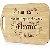 Idée cadeau originale et pleine de tendresse qui fera sourire Mamie à coup sûr ! Giftasy Cadeau Mamie - Planche à Découper en Bambou Gravée ; Papa. €14.99 ; Mamie. €14.89 ; Maman. €14.99 ; Papy. €14.99 ; Parrain. €15.39 with 3 percent savings... 💪 【Hygiénique, Robuste & Facile à Entretenir】Le bambou est naturellement antibactérien et résistant à l'humidité. 🎁 【Cadeau pour Mamie】Offrez bien plus qu'une simple planche à découper ! Gravure Message Mamie Tendre Cadeau Mamie, Planche à Découper En Bambou Pour Grand-Mère, Idée Originale Et Personnalisable D'Anniversaire Ou De Retraite Cadeau Personnalisé Mamie Ce souvenir personnalisé et intemporel est garanti de lui plaire ! Découvrez notre planche à découper bambou ✨ : le cadeau parfait pour Mamie ! ✨ 【Cadeau Zéro Faute pour Toutes Occasions】Idée cadeau parfaite pour la Fête des Mères, un anniversaire, Noël ou une attention surprise. Un simple lavage à la main suffit ! 🎁 【Prêt à Offrir & Achat Sans Souci】C'est le cadeau immédiatement impressionnant qui provoquera un grand sourire. 🌱 100% écologique et naturel – une attention pleine d'amour et de sens. Ce cadeau unique et allie l'utile à l'agréable : une surface ultra-fonctionnelle et un message gravé à vie : Tout est meilleur quand Mamie le prépare. Un cadeau pour mamie ? Créez de superbes cadeaux personnalisés avec photo et texte. Chaque grand-mère adore 🎁 Idéale pour son anniversaire, la Fête des Mères ou pour lui offrir un souvenir unique. Commandez maintenant et faites plaisir en un clic ! Giftasy Cadeau pour Mamie, Cadeau Anniversaire Mamie - Planche à