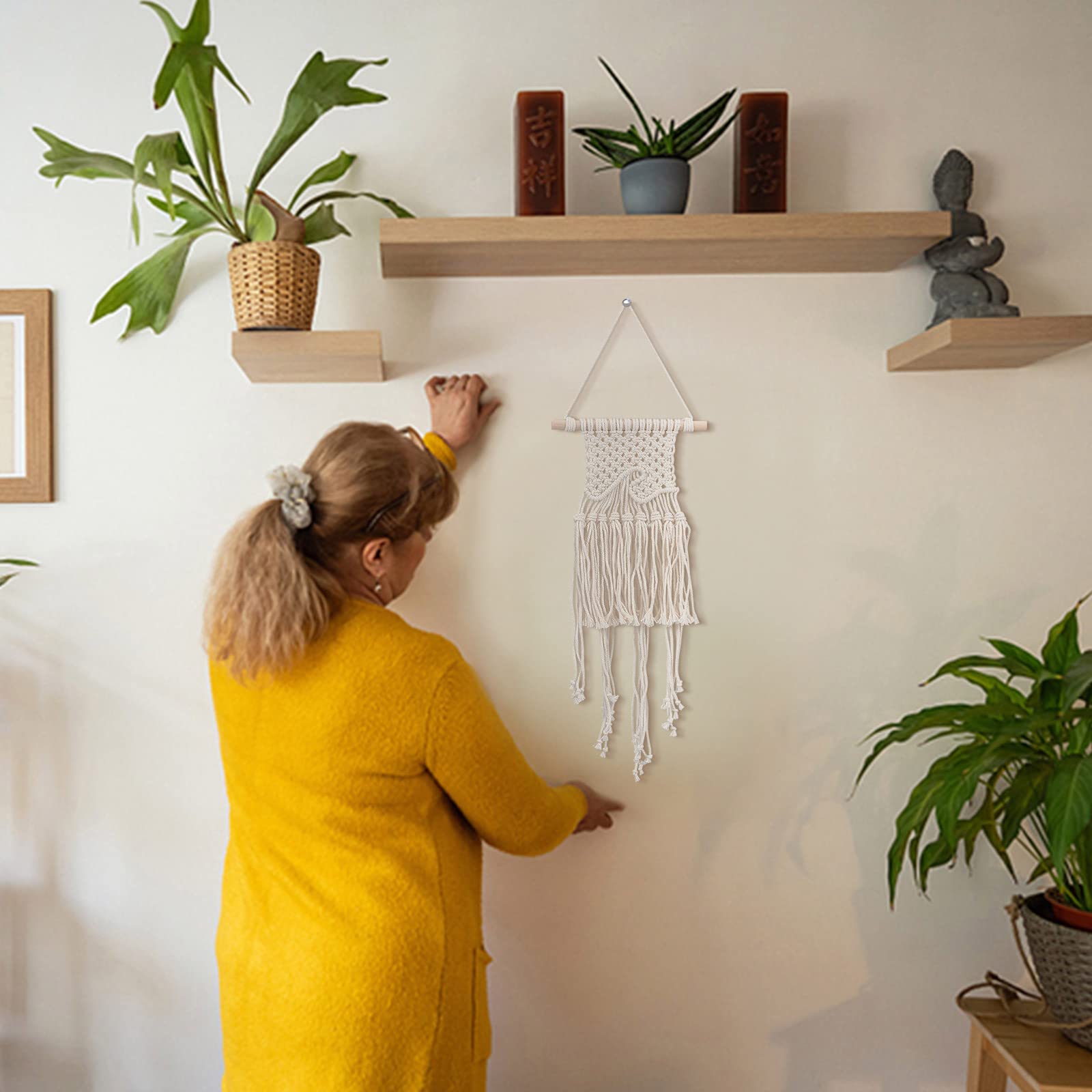 Kit macramé mural coquillage | acheter en ligne sur buttinette Kit Macramé Débutant Dées De Feulles En Macramé Pour La Décoraton Murale Macramé Kit KIT Macramé Mural IDRA - LOKO LOKO Styles bohème et nordique:la suspension murale en plumes de corde de coton convient à n'importe quelle pièce et à n'importe quel style, de la chambre au bureau, du style bohème au style de ferme moderne, ça se marie parfaitement. Réalisez une jolie suspension murale écrue en macramé pour décorer votre intérieur. Cette délicate plume d'environ 24 cm de long (anneau inclus) s'accordera... il peut apporté de la joie et de la chaleur à n'importe quel espace. Kits de macramé pour adultes débutants:nous vous fournissons des instructions très détaillées, même si vous êtes novice, vous pourrez réaliser une pièce parfaite avec suffisamment de patience.