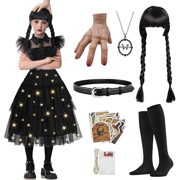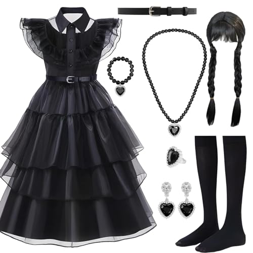 Tenue Carnaval Fille Thème Sombre MeYuxg Déguisement Mercredi Enfants, Déguisement Halloween Fille, Costume Halloween Fille Pour Robe Mercredi Addans, Gothique Lolita Robe Filles, Costume Mercredi (110 Deguisement Mercredi Addams Fille Déguisement Mercredi fille noir et gris Costume gothique]Parfaite pour les fêtes d'Halloween et de Carnaval, cette robe gothique transforme votre fille en un charmant personnage sombre et... Les accessoires assortis rapprochent votre fille de son rôle préféré et augmentent ainsi le plaisir des jeux de rôle. Par conséquent, cette robe est le cadeau parfait pour un anniversaire, Noël, le Nouvel An, Halloween, le carnaval, un jeu de rôle et toute autre occasion pour votre fille, nièce ou petite-fille. 👻【Occasions Appropriées】Cette robe convient à un usage quotidien ainsi qu'à une fête d'anniversaire, à un jeu de rôle, à une fête de carnaval, à une visite d'un parc d'attractions, à un jardin d'enfants, à un voyage fantastique, à des vacances, à un festival, à un festival de danse, à l'intérieur et à l'extérieur, à une séance photo artistique et d'autres occasions spéciales. La partie transparente du corsage de la robe a été élargie et rapprochée de l'original. 👻【Achat Sans Risque】Nous offrons un SERVICE DE RETOUR ET D'ÉCHANGE GRATUIT en cas de problèmes de qualité et de taille. Veuillez vous référer au tableau des tailles dans l'image et vérifier soigneusement, en particulier les mesures de poitrine et de taille, avant de passer votre commande. Si vos mesures se situent entre deux tailles, nous vous recommandons de choisir la taille la plus grande. Trouvez le déguisement Halloween parfait pour vos enfants ! Explorez nos tendances pour 2024. Faites de cette fête un moment magique avec des costumes amusants