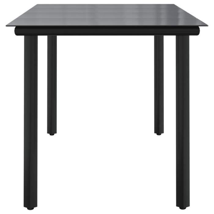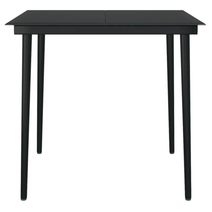 Remarque : nous vous recommandons de couvrir la table pendant la pluie, la neige et le gel pour assurer une longue durée de service. Table Jardin Acier Verre Akozon Table à Dîner De Jardin Noir 200x100x74 Cm Résine Tressée Table Extérieure Vidaxl Cette table de salle à manger est construite avec un cadre en acier enduit de poudre, robuste et stable pour une utilisation quotidienne à l’extérieur. Mobilier à dîner de jardin et coussins 7pcs Résine tressée Gris... Avertissement De Sûreté Nous vous recommandons de couvrir l'ensemble en cas de pluie, de neige et de gel pour qu'il dure le plus longtemps possible. Profitez de dîners quotidiens avec les membres de votre famille autour de cette table de jardin à la mode Réaménagez votre cour ou votre porche avec cette table de salle à manger accueillant de patio. Elle peut sans effort répondre aux besoins de vos invités tout en créant le cadre idéal pour les repas en plein air ! Vous pouvez profiter d'un dîner sous les étoiles ou d'un déjeuner ensoleillé sur la terrasse avec notre table de salle à manger. Elle peut accueillir jusqu'à 4 personnes... Remarque : nous vous recommandons de couvrir la table pendant la pluie, la neige et le gel pour assurer une longue durée de service., Couleur : noir Le dessus de table en verre lisse est facile à nettoyer avec un chiffon humide. Le dessus de table en verre lisse est facile à nettoyer avec un chiffon humide vidaXL Table de jardin noire 80 x 80 x 74 cm – Carrée, acier et verre, design moderne pour salle à manger et divertissement en plein air Le dessus de table robuste est parfait pour placer des repas, des boissons et d’autres objets décoratifs. Le dessus de table robuste est parfait pour placer des repas, des boissons et d’autres objets décoratifs
