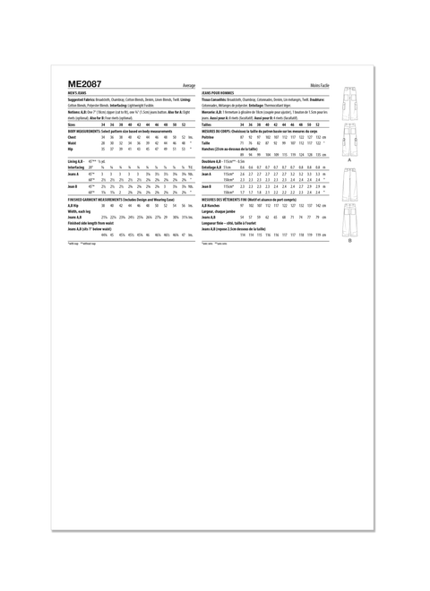 Patron KnowMe 2012.BB - Combinaison pour homme Jeans Jambes Larges Taille 44-52 KNOW ME Norris Dánta Ford BB Patron De Couture Jeans Pour Patron Jeans Jambes Larges Découvrez le patron de couture Know Me 2087 par Norris Dánta Ford, idéal pour les couturiers cherchant à créer des jeans pour hommes modernes et stylés. Ce patron propose des jeans à jambes larges avec des détails fonctionnels et esthétiques, parfaits pour des tenues décontractées et tendance Les jeans à jambes larges ont une taille avec 2 passants de ceinture cousus l'un à côté de l'autre, des poches plaquées, des poches pour pièces de monnaie, des rivets optionnels, un empiècement arrière, une fermeture éclair sur le devant et une fermeture à bouton. Know Me Norris Dánta Ford ME2087BB Patron de couture pour jeans jambes larges pour homme Taille 44 46 48 50 52 : : MaisonÀ propos de cet article Tous les kits de patrons Know me sont livrés avec des modèles de couture, des recommandations de tissu, des pièces de patron et des instructions (français non garanti), et l'emballage comprend des informations sur la façon de... Instructions écrites et illustrées étape par étape pour vous guider tout au long du processus de couture Le patron de couture comprend des pièces de patron pour découper le tissu