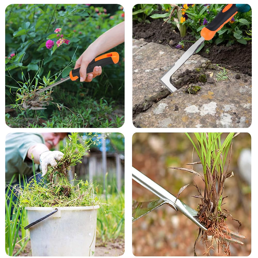 Arrache Pissenlit Jardin Désherbeur Manuel,Extracteur De Mauvaises Herbes Debout, Outil Télescopique Pour Enlever Les Extracteur Pissenlit Inox 【Large gamme d'applications】Nos désherbeurs nettoient facilement non seulement les mauvaises herbes dans les petits et moyens espaces de votre jardin, mais aussi la plantation, la coupe, la lame de scie, la pelle, le desserrage, etc. Arrache Mauvaise Herbe - A563 - Outil Manuel en Acier Inoxydable - Poignée en Bois - Désherbage... 【Super haute qualité】Adopté de haute qualité, forgé avec précision et poli. Robuste et durable, pas facile à casser et à déformer, la lame est tranchante, ce qui vous permet de couper facilement les mauvaises herbes. La conception robuste en forme de v peut creuser profondément pour attraper toutes les mauvaises herbes et les tirer facilement. 【Ensemble de désherbage de 4 pièces】Vous obtiendrez 3 fonctions différentes de votre désherbeur, y compris un désherbage, un désherbage en V et un désherbage à 4 dents, 1 paire de gants pour vous aider à éliminer et à vous détendre de tous les côtés, à déraciner et à planter des mauvaises herbes. 【Design concis】Ce désherbage a une poignée confortable et longue, facile à tenir et économise de la force. Un trou de suspension à l'extrémité de la poignée facilite la suspension et le stockage. Rendre le désherbage plus facile. Désherbeur, Longueur 100 c, Désherbeur anuel, Arrache-Pissenlit, Extracteur de auvaises