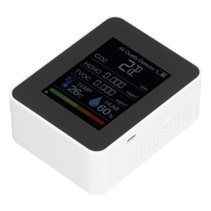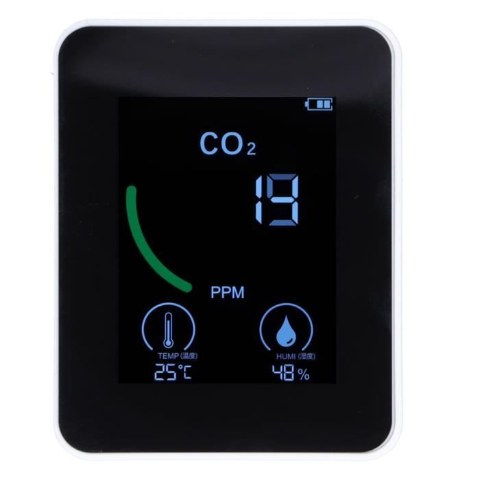 Écran LCD dynamique : avec un écran LCD double ligne qui affiche les trois mesures à la fois, vous pouvez facilement suivre l'état de votre environnement sans basculer entre les modes. Compteur Dioxyde De Carbone Portable Détecteur Air 5 En 1 Portable - Mesure CO2, Température, Humidité, HCHO, TVOC Avec Écran LCD | Leroy Merlin Testeur CO2 Caractéristiques : * Surveillance complète : le compteur de dioxyde de carbone portatif 3 en 1 fournit des mesures en temps réel des niveaux de dioxyde de carbone, de la température et de l'humidité, ce qui en fait un outil essentiel pour évaluer efficacement la qualité de l'air intérieur. Détecteur CO2 portable écran LED, testeur dioxyde de carbone... Caractéristiques : Nom de la pièce : compteur de dioxyde de carbone portable 3 en 1., Matériau : plastique., Dimensions : 150 x 52 cm. Couleur : noir et rouge. Détecteur De Dioxyde De Carbone Co2, 3 En 1 Détecteur De Dioxyde De... * Design convivial : léger et portable, cet appareil portable est adapté à divers environnements tels que les maisons, les écoles et les bureaux, améliorant la gestion de la qualité de l'air dans les espaces publics. * Écran LCD double ligne : doté d'un écran LCD double ligne, l'appareil affiche la concentration de dioxyde de carbone ainsi que la température et l'humidité simultanément, permettant une surveillance et une analyse faciles. Modèle : S8601 est un capteur semi-conducteur, S8601A est un capteur infrarouge. Qualité de l'air 9999 ppm Dioxyde de carbone numérique Température * Arrêt automatique : conçu avec une fonction d'arrêt automatique pour économiser la durée de vie de la batterie, ce compteur garantit une utilisation à long terme sans les tracas des remplacements fréquents de piles. Contenu de l'emballage : 1 compteur de dioxyde de carbone portable.