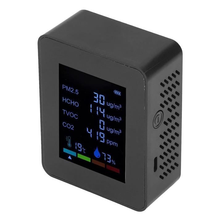 Moniteur Qualité Air TVOC Température Humidité Détecteur Moniteur Capteur Dioxyde Carbone Qualité De L'air - Câble USB Appareil Rechargeable USB Alarme TVOC Détecteur de qualité de l'air avec chargement USB Evier cuisine,Capteur de dioxyde de carbone CCS811 HDC1080 CO2, capteur... Plage de mesure de l'humidité : 0% - 99% RH., Précision : ± 2 % HR. Capteur TVOC : le détecteur de CO2 avec capteur TVOC est conçu pour surveiller la valeur du CO2, la température et l'humidité de la qualité de l'air afin de maintenir votre environnement. Moniteur en temps réel : le moniteur de dioxyde de carbone peut détecter la concentration de dioxyde de carbone dans l'air en temps réel, et quatre voyants d'avertissement clignotent en même temps lorsqu'elle est supérieure à 1999., Lecture facile : le moniteur de CO2 utilise un écran couleur intelligent avec des chiffres clairs. Plage de mesure de température : 0-50 ℃., Précision : ± 1 ℃. Lorsque la concentration de CO2 est de 1600 à 1999, le voyant rouge commence à clignoter et à déclencher une alarme. Large utilité : détecteur de dioxyde de carbone portable, conception compacte, adapté à la surveillance de la qualité de l'air dans les maisons, les écoles, les immeubles de bureaux, les hôpitaux, les restaurants, les centres commerciaux, les usines, les hôtels, les laboratoires et autres lieux. idéal : lui ou elle. Utilise un capteur de haute précision, une détection de température et d'humidité de haute précision, avec une capacité de résistance aux interférences fines, des performances de travail stables, avec une faible consommation d'énergie