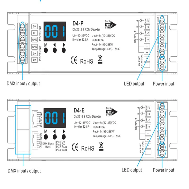 S.r.l. | DMX 512 décodeur, 4 canaux 6A chacun, tension 12-24V DC Alimentation électrique industrielle D4-E D4-P 4 voies PWM tension constante DMX & RDM LED décodeur contrôleur affichage numérique XLR3 port RJ45 entrée DC1236V 8A4CH, Alimentation électrique industrielle Tension DC12-36V 8A Par Canal D4-E D4-P 4 Canaux PWM Tension Constante DMX & RDM Contrôleur Décodeur Alimentation DC 12-36V Décodeur led DMX 3 canaux RGB 220V AKEPO Décodeur DX LED 24 canaux avec affichage nuérique, pilote de...