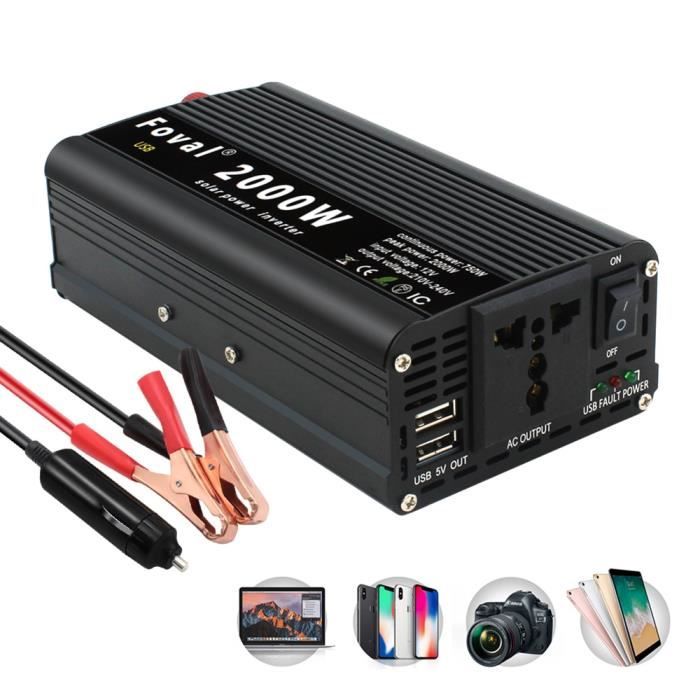 Spécification: Nom du produit : adaptateur de prise de voiture. Convertisseur 12V / 220V sur prise allume cigare - Bricolage Profitez de son utilisation pratique. Convertisseur Puissance 1500W Convertisseur D'onduleur De Puissance De Voiture Portable 12V DC 12V/24V à AC 220V USB, Convertisseur De Puissance De Voiture, Adaptateur De Chargeur 200W Convertisseur 12V 220V 1500W Notre onduleur pour voiture offre une charge plus intelligente et plus rapide avec une protection contre les surintensités pour une charge plus sûre. Interface USB : charge rapide 5 V (quatre ports USB) Tension d'entrée : 12 V/24 V applicable Tension de sortie : DC220V Puissance max : 1500W Matériau : coque en métal Prise de sortie : Double prise (1) Trois prises (1) Longueur du câble d'alimentation : environ 75 cm/29,53 pouces Liste de colisage: 1 pièces * adaptateur de prise de voiture Remarques: 1., En raison des différents effets d'affichage et d'éclairage, la couleur réelle du produit peut être légèrement différente de la couleur affichée sur l'image., 2., En raison de la mesure manuelle, veuillez permettre un écart de mesure de 1 à 3 cm. Caractéristiques]Le puissant onduleur de 300 watts fournit une alimentation continue de 12 V CC à 220 V 230 V CA (puissance de pointe de 600 watts... Découvrez la commodité et la puissance de cet onduleur polyvalent. ✿Protection de puissance exceptionnelle : Équipé d'un système de protection avancé, notre onduleur de voiture assure une défense complète contre les surtensions, les surintensités, les connexions inversées, les courts-circuits et les basses tensions pour protéger vos précieux appareils électriques. Usages recommandés pour le produit. Voiture ; Source d'alimentation. Alimenté par la prise de voiture ; Nom de modèle. Generic-ONNEMORJVR613BAMQV ; Couleur. 12v24v Dites adieu aux heures d'attente pour que vos appareils se rechargent. Il restaure rapidement l'alimentation de vos gadgets, prenant en charge une charge rapide de 5 V. ✿Tension sans effort : cet onduleur de voiture distribue intelligemment la tension et le courant selon l'appareil, permettant une charge plus sûre. Description du produit Chargeur d'onduleur de véhicule ✿Largement utilisé : cet onduleur de voiture est conçu pour fournir de l'énergie à une variété d'appareils, y compris les réfrigérateurs de voiture, les aspirateurs et les purificateurs d'air haute puissance.