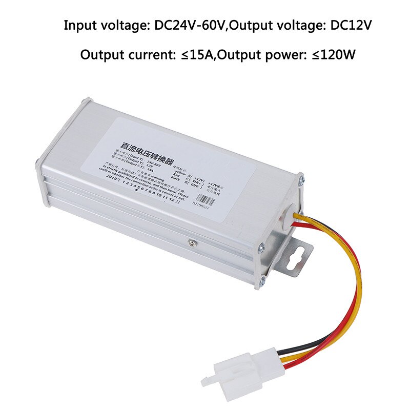 Adaptateur 36V à 12V Scooter DC Convertisseur De Voiture Electrique Entrée 36V-72V Sortie Alimentation Scooter électrique 15A LIU-7542150539137-Convertisseur abaisseur DC-DC Convertisseur Abaisseur DCDC Transformateur de DC Convertisseur de Voiture Electrique Entrée 36V-72V Sortie 12V -15 A... Conception de protection de sécurité --- Avec la connexion renversée, les débordements et la protection de court-circuit, sûre et fiable Pratique à installer --- La conception modulaire de la structure du circuit est pratique pour une installation rapide Le tube MOS et le tube redresseur adoptent la nouvelle installation d'origine pour assurer la sécurité et la stabilité du convertisseur. Adaptable --- Rendement élevé et économie d'énergie, avec une forte adaptabilité, telle que basse température, haute température, humidité, corrosion, poussière, vibration, etc. La coque utilise de l'aluminium aviation neuf pour chauffer la chaleur rapidement. Spécifications: Tension d'entrée: DC36V-72V Tension de sortie: DC12V Courant de sortie: ≤15A Puissance de sortie: ≤150W, puissance de sortie maximale 180W, puissance de sortie continue 140 W Forme d'onde de tension de sortie: onde carrée Efficacité de l'onduleur: 90 (%) Taux d'ajustement de tension: 0., 5 (%) Taux d'ajustement de la: 1 (%) Taille du produit: comme l'image Application: Scooter électrique, corne, LED, lampe de hernie, tableau de bord, etc. Excellente performance --- Cet adaptateur de convertisseur comporte la fréquence élevée d'inverseur, la réponse rapide, la petite taille, le poids léger, la consommation basse d'énergie DC-36V 48V 72V Pour 12V 10A Convertisseur Adaptateur for Bicyclette...
