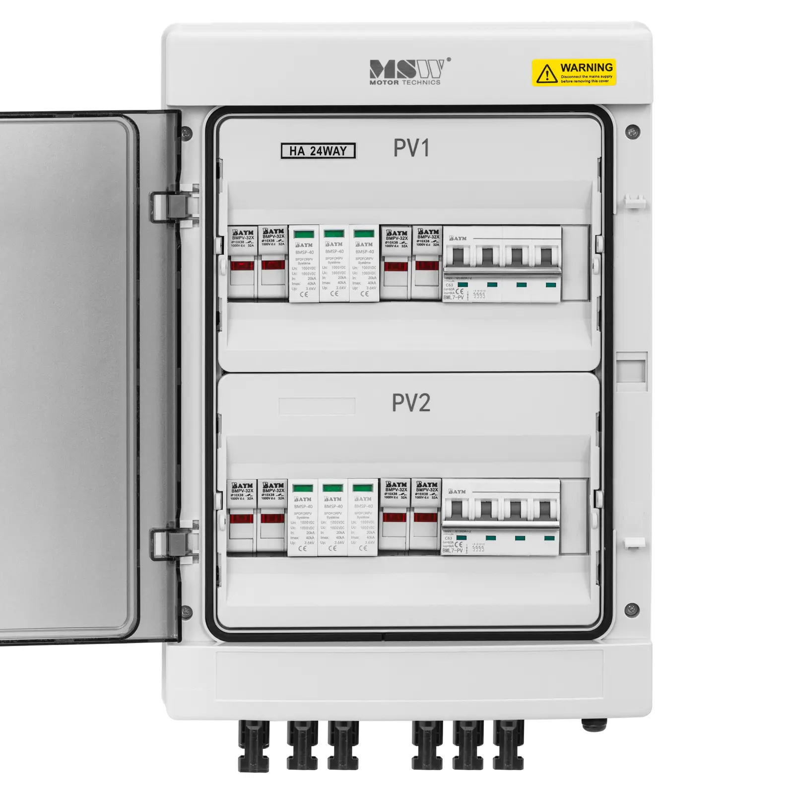 Rail Panneau Solaire MSW Coffret De Protection DC Photovoltaïque - Type 2 - 4 Parasurtenseur Type 2 PV Coffret de protection AC DC photovoltaïque 6 kW | THERM ELEC Coffret de protection DC photovoltaïque - type 2 - 4 entrées / 2... Le montage mural simple et la fenêtre transparente vous facilitent ensuite la vérification et l'entretien réguliers de la boîte de jonction PV. Grâce aux connexions de serrage et aux canaux de câble intégrés dans les côtés, vous pouvez utiliser la protection contre les surtensions pour installations PV rapidement et clairement. Sûr : la protection contre les surtensions pour installation PV (type 2) protège vos cellules solaires contre la foudre ou d'autres tensions élevées Pour cela, la boîte de jonction solaire vous offre un total de 4 entrées séparées qui vous permettent de gérer et de sécuriser facilement 4 brins. Facile – Installation rapide du système PV de protection contre la foudre grâce aux raccords de serrage et aux canaux de câble intégrés Efficace : la boîte de jonction PV garantit une transmission efficace de l'énergie générée vers l'onduleur ou d'autres appareils Montage mural : pour une installation et un entretien faciles du boîtier de jonction solaire Ce coffre de protection DC photovoltaïque de MSW protège les panneaux solaires, les onduleurs et les appareils électriques des hautes tensions †par exemple, en cas d'impacts de foudre directs... En savoir plus sur le produit 209,00 € Prix au moment de la publication 29.06.2025 209,00 € Prix le plus bas des 60 derniers jours 209,00 € Prix le plus bas des 30 derniers jours...