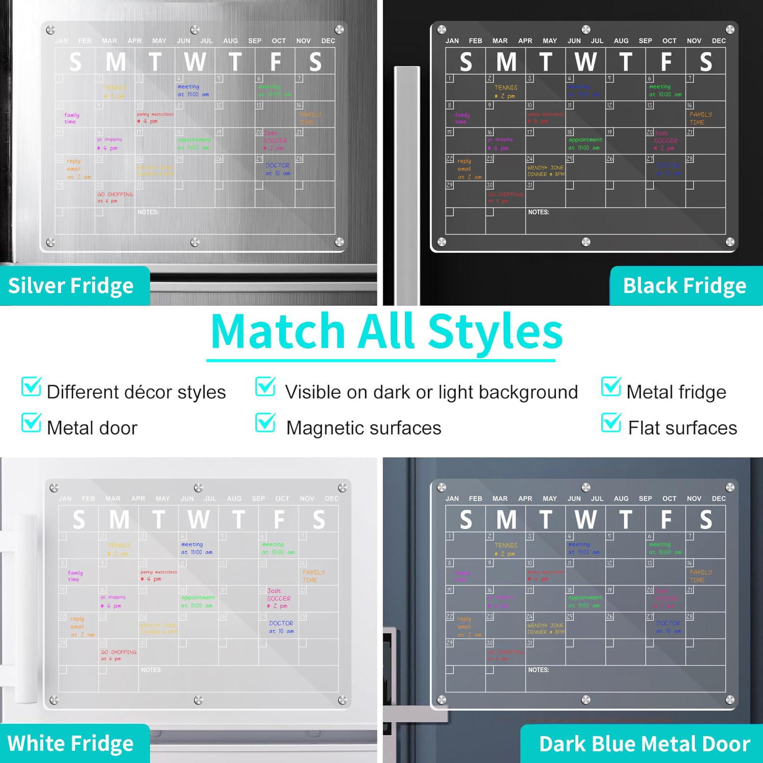 Le calendrier effaçable à sec de grande taille vous permet d'enregistrer plus de contenu. Marqueur ultra transparent et facile à effacer. Poids : 396 g (1 pièce). Caractéristiques : Calendrier effaçable à sec en acrylique de haute qualité, durable et facile à nettoyer. LSLJS Tableau Magnétique en Acrylique pour Réfrigérateur, Calendrier Mensuel et Tableau Vierge pour Réfrigérateur, Autocollant de Gestion de Programme Tableau Blanc en Acrylique, Tableau d'Affichage Calendrier magnétique puissant effaçable à sec, aucune installation nécessaire. Les aimants puissants maintiennent le calendrier fermement en place. 1 Set Acrylique Feuille A4 Tableau Transparent Pour Réfrigérateur... Calendrier effaçable à sec en acrylique de haute qualité, durable et facile à nettoyer. Ce calendrier en acrylique de grande taille pour réfrigérateur est facile à lire et crée un affichage élégant sur votre réfrigérateur. Remarque : Notre calendrier mensuel en acrylique ne convient pas aux réfrigérateurs non magnétiques. Agenda Magnétique Transparent Réutilisable TABLEAU DE CALENDRIER Acrylique Transparent Planificateur Mensuel 12 X8 Organisateur Familial Frigo Chrrapte Lot de 2 Calendriers agnétiques Frigo, Calendriers... 1 boîte à stylos magnétique