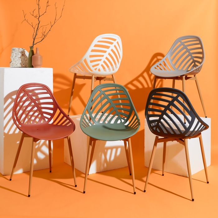 Profitez d'un peu d'air frais en déplaçant ces chaises là où vous le souhaitez, que ce soit pour suivre le mouvement du soleil ou pour créer de nouveaux espaces de détente dans votre jardin. Intégration Parfaite dans Votre Extérieur : Ces chaises ont été spécialement conçues pour s'intégrer harmonieusement dans votre environnement extérieur. Chaise Exterieur Bois HOME DECO FACTORY - Chaise Alameda Terracotta - Lot De 4 Chaise Jardin Aluminium Ce Lot de 4 Chaises de Jardin « Alameda » 83cm Terracotta au design ajouré conjugue modernité et tendance pour votre espace extérieur. Parfaites pour accompagner votre table de jardin, ces 4 chaises disposent d'un traitement époxy garantissant une durabilité optimale face aux conditions extérieures Que vous disposiez d'une terrasse, d'un balcon ou d'un jardin, elles s'adapteront parfaitement à votre espace, créant ainsi une atmosphère accueillante et conviviale. HOME DECO FACTORY, c’est l’assurance d’un intérieur bien organisé, toujours tiré à quatre épingles et prêt à accueillir famille et amis. Leur design épuré et contemporain se marie parfaitement avec différents types de décorations extérieures, qu'elles soient classiques ou plus contemporaines. Leur design élégant et leur finition de qualité en font des pièces polyvalentes qui peuvent être intégrées dans n'importe quelle pièce de votre intérieur. Testez-la et vous ne voudrez plus vous en séparer ! Ajoutez du style et de la fonctionnalité à chaque pièce de votre maison avec nos produits élégants et pratiques. Leur légèreté les rend également faciles à ranger lorsqu'elles ne sont pas utilisées Conserver hors de portée des enfants., Risque de taches. Poids d'une chaise : 3,5 kg - Hauteur d'assise : 45 cm - Poids maximum supporté : 110 kg. Caractéristiques. A monter soi-même. OUI. Hauteur (cm). 83.4 Légèreté et Modernité : Ces chaises sont à la fois légères et modernes, ce qui les rend parfaites pour être déplacées facilement selon vos besoins. Polyvalence d'Utilisation : Les chaises d'extérieur Alameda ne se limitent pas à une utilisation en plein air ; elles peuvent également être utilisées à l'intérieur de votre maison. Avertissement De Sûreté Assemblage requis. Chaise de jardin - Alameda - Lot de 4 - Terracotta - Design ajouré