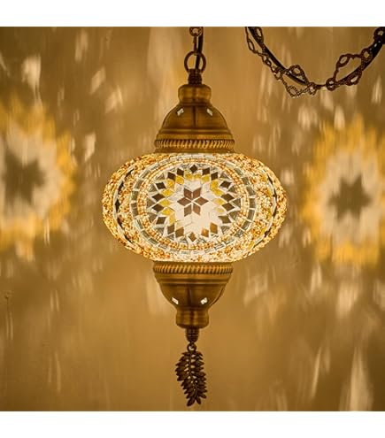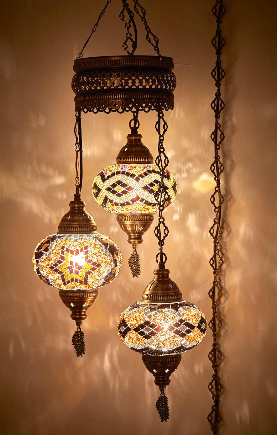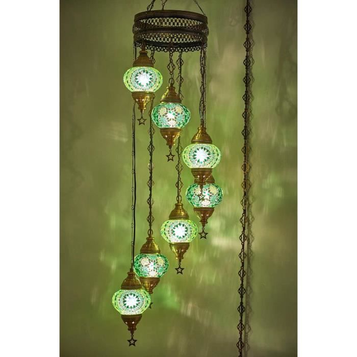 DEEX Plafonnier turc arocain en osaïque, luinaire suspendu avec Fabriqué à la main en Turquie pour une utilisation aux États-Unis. 100 % fait main. Pièces de verre mosaïque et perles collées 1 par 1 sur les globes en verre. Fabriqué à la main en Turquie pour une utilisation aux... Lustre Suspendu Avec Perles Et Plumes Ampoules E12 DEMMEX Lustre Turc Marocain En Mosaïque Pour Plafond, Hardwired, Suspension Artisanale à 3 Globes, Verre Mosaïque Bohème, Hauteur 105 Cm, (Blanc Lustre Style Bohème Ampoule E12 Lampes turques Demmex La plus grande sélection de lampes turques sur Amazon. Nécessite des ampoules candélabre E12., Lampes turques Demmex La plus grande sélection de lampes turques sur Amazon. 2019 turc marocain mosaïque câblée ou Swag brancher Lustre avec 15... Diamètre du globe : 12 cm., Compatibilité américaine. Diamètre du globe : 12 cm. Hauteur : environ 100 cm (du plafond au dernier globe suspendu) , Compatibilité américaine. Plumes métalliques suspendues des globes.
