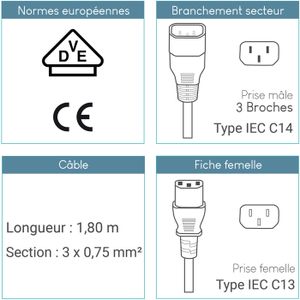 Montage et connectique PC DEXLAN Rallonge d alimentation ATX P4 pour Rallonge Câble PC DEWENWILS Lot De 2 Rallonges De 0,9 M, Câble D'alimentation SJTW De 16 Awg Resistant Aux Intemperies Pour Interieur Et Exterieur Prises De Courant A 3 Broches Nema 5 15p Vers Nema 5 15r Noir Rallonge Câble Alimentation Carte Mère 2 Broches Le cordon d'alimentation dispose d'une prise PSU PCIE 8 broches et d'une prise PSU PCIE 8 broches avec verrouillage. Il peut être fermement fixé aux deux extrémités pour éviter toute déconnexion accidentelle Item Specifications Type:Câble d’extension d’ordinateur Longueur:30 cm Matériau:PVC Nombre de broches:2 Couleur:Noir Package 2x Câble d’extension d’ordinateur SDTC Tech Lot de 2 rallonges SAE 18 AWG 2 broches SAE Connecteur rapide 10 A Panneau de batterie... [Isolation en PVC durable] La couche extérieure en PVC assure une excellente flexibilité, durabilité et résistance à la chaleur. [Longueur d'extension de 30 cm] Idéal pour une gestion flexible des câbles et une installation facile à l'intérieur des boîtiers.