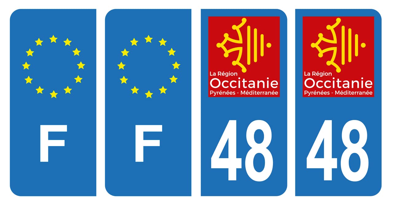 Autocollants Plaque Immatriculation HADEXIA Autocollant Plaque D'immatriculation Voiture Département 48 Lot 4 Stickers Plaques Avant Arrière Autocollants 48 avec logo officiel région Languedoc-Roussillon Autocollant 48 avec blason du département de la Lozère pour plaque d... Impression HD sur un vinyle de haute tenue avec plastification de protection anti UV et découpe à la forme. Les autocollants des régions sont réalisés selon la Charte graphique de la FIEV., Fabrication Française. Clause de non-garantie Ceci n'est pas une alternative à une plaque définitive homologuée. La dimension des adhésifs est de 45 x 100 mm pour une adaptation parfaite. Autocollants adhésifs haute performance pour plaques automobiles (voitures, utilitaires, caravanes, remorques, camping-cars., ., ., ) Lot de 4 stickers (plaque avant + plaque arrière) Fabriqué en France selon la Charte graphique de la FIEV - Pose facile Jeu de 4 stickers, autocollants adhésifs haute performance pour plaques automobiles (voitures, utilitaires, caravanes, remorques, camping-cars...). Ils sont livrés directement découpés à la forme aux dimensions officielles H 10 cm x L 4,50 cm (pour toutes autres dimensions contactez-nous