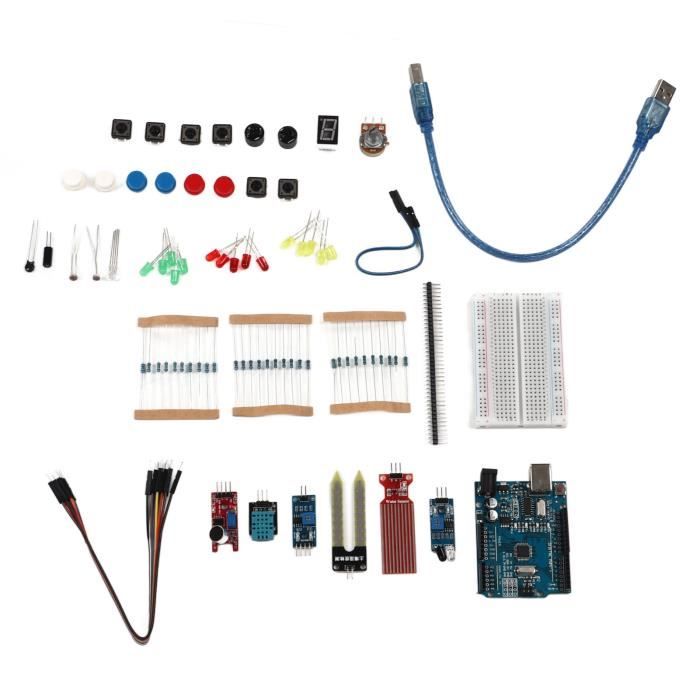 Carte Développement Wifi Esp32s DFRobot Carte De Développement ESP32-PICO-KIT (Wi-Fi Et Bluetooth Projets Domotique Iot Grâce à la carte de développement ESP32, qui intègre le Wi-Fi et le Bluetooth, ce kit est idéal pour apprendre à concevoir des projets connectés. Il inclut également un écran OLED 0.96 pour afficher des informations, une grande breadboard pour le prototypage sans soudure, ainsi qu'une variété de capteurs et de modules pour... Kit Démarrage Basique ESP32, Arduino, Raspberry Pi, Micro:Bit – Multi-Plateformes | Electronic Shop 【Modules de capteurs et accessoires】:Comprend des pièces telles que des résistances, des boutons-poussoirs, des LED RVB, des buzzers et des modules de capteurs tels que l'évitement d'obstacles et la détection de la lumière. Kit de démarrage de base pour carte de développement WiFi I OT ESP32... 【Organisé et facile à utiliser】:Toutes les pièces sont soigneusement emballées dans une boîte en plastique étiquetée, aidant les utilisateurs à localiser et à ranger rapidement les composants pour une utilisation répétée à la maison, à l'école ou dans les ateliers. Les utilisateurs peuvent réaliser des projets concrets avec des capteurs infrarouges, des modules de température et d'humidité, des modules photosensibles, des relais et bien plus encore. 【Parfait pour les débutants et les projets de bricolage】:Spécialement conçu pour les débutants en électronique et les apprenants Arduino, ce kit ESP-32 fournit une expérience pratique avec de vrais composants pour des expériences créatives. Il contient la carte de développement ESP-32S WiFi et un grand nombre d'écrans OLED, de capteurs, d'actionneurs et d'autres modules pour aider les utilisateurs à démarrer rapidement.