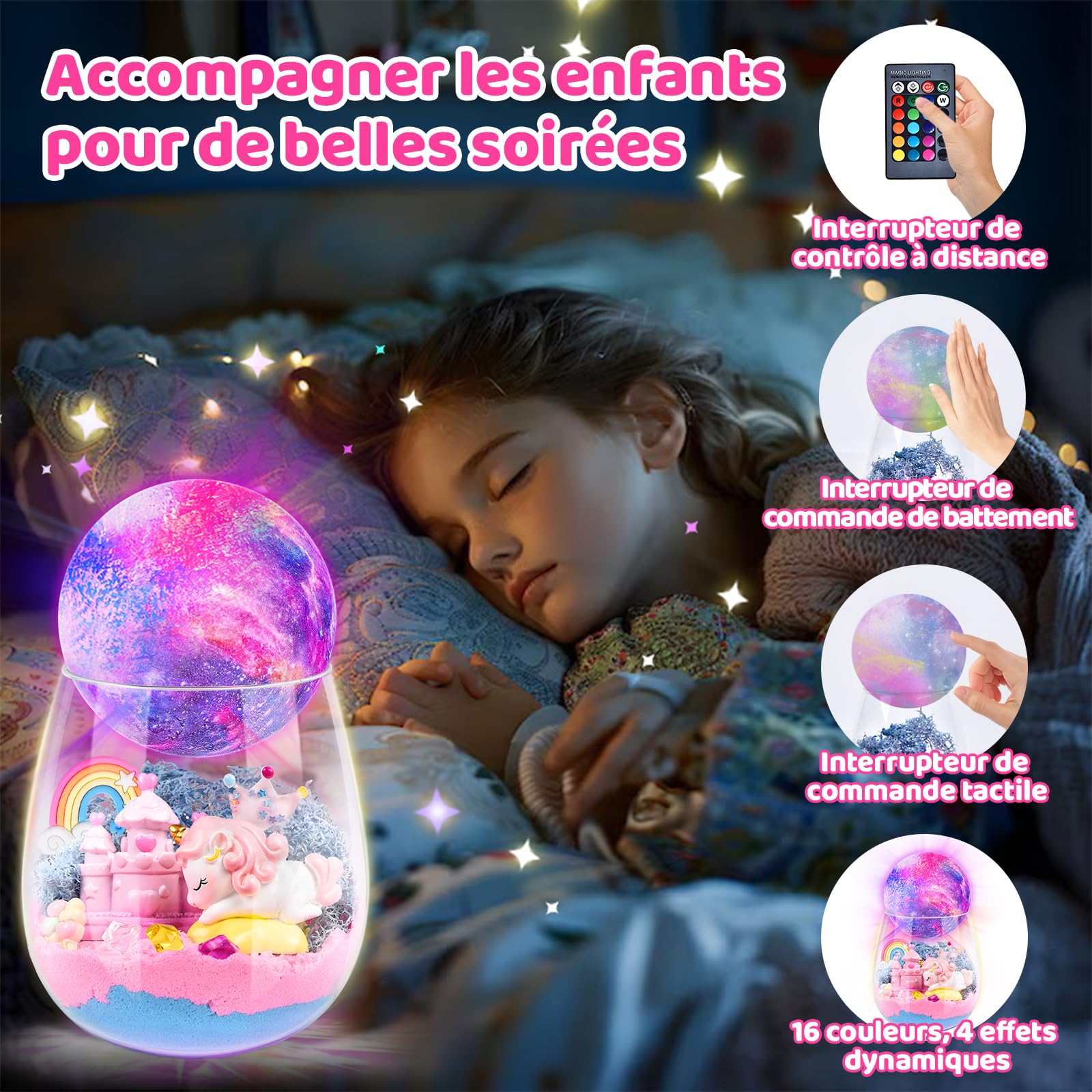 La douce lumière apaise le cœur des enfants et les accompagne dans de beaux rêves. Le matériau présente une surface lisse et des bords arrondis, ce qui le rend sûr pour les enfants. Cela renforce le lien parent-enfant. Il offre 13 changements de couleur, 4 modes d'éclairage et une luminosité réglable en continu, ce qui permet de changer facilement l'ambiance lumineuse. DIY Licorne Light-Up Terrarium Kit pour Enfants - Burkina Faso 🦄【Matériau Sûr】Cet cadeaux Licorne fille est fabriqué dans un matériau de haute qualité, inodore et non toxique. Ils peuvent concevoir où placer toutes les décorations à l'intérieur de la veilleuse et utiliser leur créativité et leur imagination pour construire leur propre veilleuse licorne unique. Ensemble de terrarium unique]Ce kit d'art de licorne pour enfants comprend du sable magique, des mousses conservées, une veilleuse LED 9 couleurs avec... Ce cadeau égayera non seulement la pièce, mais aussi le visage de la petite rêveuse. 🦄【Lampe Licorne DIY】Les enfants peuvent utiliser leur imagination pour créer leur propre château et paradis de licornes à partir de ce bocal en verre. Profitez de vos moments parents-enfants avec ces fournitures et articles de loisirs créatifs pour filles de 3 à 12 ans. Activité Manuelle Enfant 3 12 Ans Cadeaux Licorne, Kit Terrarium DIY Avec Jouet Licorne Pour Filles Et Activité Manuelle Enfant Jardin Féérique Kit d'artisanat de terrariu licorne pour enfants, jouets licorne... C'est un excellent jouet pour les activités créatives qui les occupera pendant des heures.