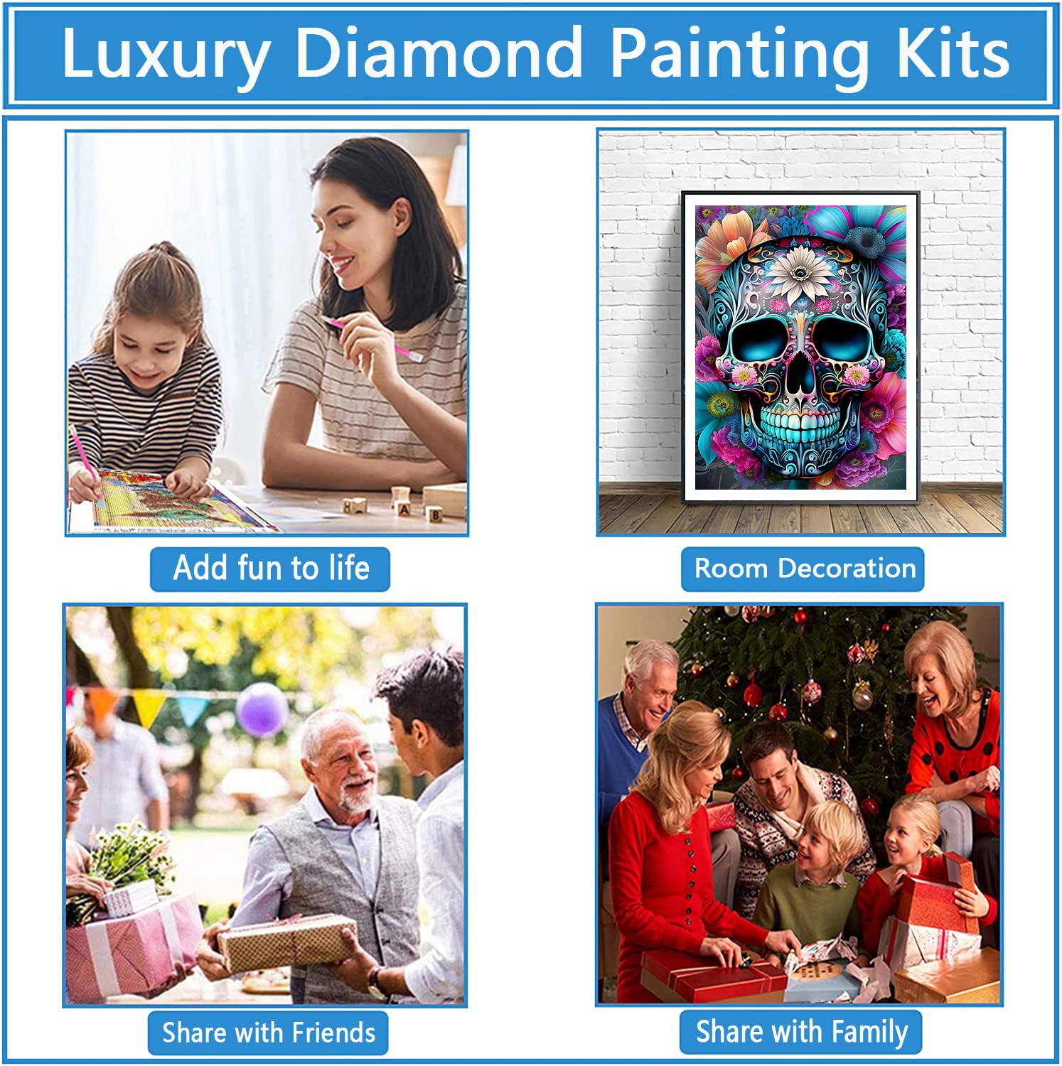 Kit Diamant Painting Adulte Débutant Déco Salon DIY Squelette Crâne Peinture Diamant Painting Kit, 5D Horreur Art Du Papillon Decoration Murale QQYRHN 5D DIY Squelette Crâne Kits de Peinture Diamant Popular Diamond Painting]Il s'agit d'un kit de peinture sur diamant populaire pour les adultes et les débutants. Conçue à la main par des designers... Pendant le processus de création, la peinture de diamants DIY peut éprouver un sentiment d'accomplissement, réduire le stress, améliorer la confiance en soi et la persévérance. 【Art Décoration】Décoré avec ce kit d'art de diamant de forage complet pour les adultes,votre chambre,salon,étude ou bureau peut être plus coloré et rendre votre séjour dans ces endroits plus agréable. Aussi, vous pouvez offrir le kit de peinture de diamant à votre famille ou vos amis, je suis sûr qu'ils l'aimeront beaucoup. La peinture au diamant QQYRHN 5D est un artisanat populaire qui influence le statut de vie des gens. 【5D Diamond Painting Kits for Adults】Each diamond painting comes with all tools in need. Package Included:1*HD painting canvas,1*diamond pen,1*red glue clay,5D round diamond drills in labeled packaging,1 tray for holding diamonds,Multiple self-sealing bags. 【Excellent Service Client】 Si les kits d'art du diamant pour adultes dans le magasin [QQYRHN] ont des problèmes de qualité, veuillez nous contacter, nous nous assurerons de résoudre tous vos problèmes dans les 24 heures. Marque. QQYRHN · Thème. Crâne · Dimensions de l'article L x l x H 30 x 20 x 1 centimètres · Taille. 30x40 cm · Type de kit dʼartisanat. peinture diamant · Fabricant