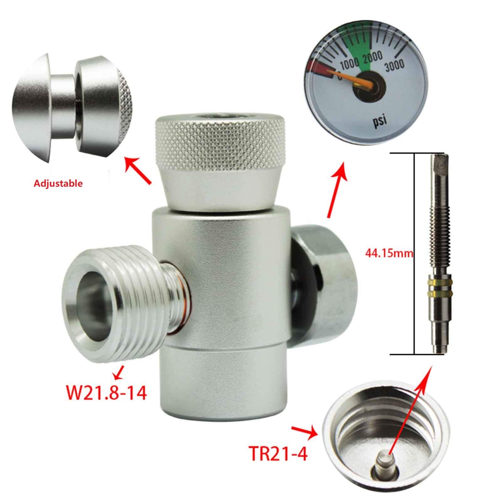 Adaptateur CO₂,Adaptateur De Co2 Haute Pression Pour Machine De Rafraîchissement | Connecteur Pour Fabricant D'eau Avec Pour Les Boissons Quotidiennes Maison Extérieur Camping Utilisation Réglable : l'aiguille de notre adaptateur de recharge de CO2 est réglable et flexible pour assurer la compatibilité avec chaque valve de bouteille. Filetage Tr21-4 W21.8 DIYARTS CO2 Recharge Adaptateur En Aluminium Acier Inoxydable Accessoire Homebrew Bière Emballage inclus:1 * Adaptateur de recharge de CO2 Valve d'évacuation: Cet adaptateur de remplissage de cylindre comporte une soupape d'échappement pour libérer en toute sécurité le gaz résiduel à l'intérieur de l'adaptateur une fois que le remplissage est terminé MULTIFONCTIONNEL] L'adaptateur De Recharge De Cylindre De CO2 Avec Tuyau Vous Permet De Remplir Facilement Votre Propre Réservoir De Soda Avec Du CO2... et délivre le gaz de manière contrôlée. Matériaux : Fabriqué à partir de matériaux métalliques de haute qualité, design précis, pas de rouille, forte résistance à l'usure et longue durée de vie. Un manomètre intégré assure la sécurité. Vanne de régulation: avec vanne Utilisation sûre : le bouton de puissance contrôle la libération. filetage intérieur: TR21-4, External thread: W21., 8-14