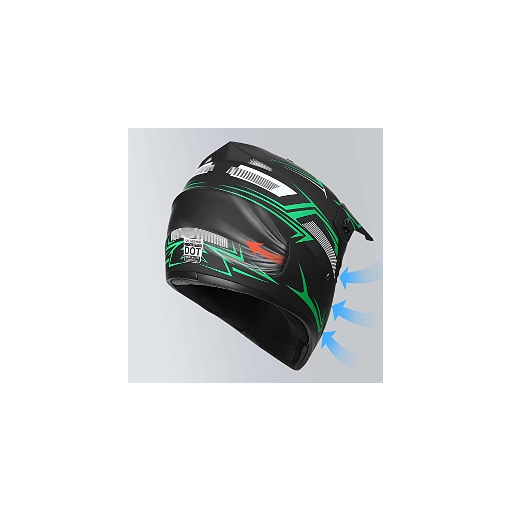 Sangle antidérapante réglable, stable même en cas de choc., 3., Masque :Forte résistance aux chocs, protection contre les impacts de corps étrangers, surface résistante aux rayures et à l'usure. O'Neal 3SRS Youth Helmet RANCID V.24 - Casque intégral Enfants ★【BOUCLE À DÉGAGEMENT RAPIDE】La boucle à dégagement rapide solide sur la mentonnière permet aux enfants d'enlever et de mettre facilement leur casque, tout en améliorant son ajustement. Casque Bmx Enfant Casques De Moto DOT Youth Pour Enfants, Casque IntéGral Pour Enfants Casque Moto Enfant Intégral Monture légère, infatigable après un port prolongé. Ventilation optimale, ventilation efficace, évacuation rapide de la chaleur et de l'humidité. Casque Moto Cross Enfant Kit (avec Gants Lunettes Masque) Professionnel Casque VTT Integral Homologué DOT Casque de Motocross pour Jeunes et Adulte pour... L'ensemble de casques de motocross tout-terrain est livré avec 1 casque de moto, 1 paire de lunettes, 1 paire de gants et 1 masque. Tailles : S (52-55 cm), M (56-57 cm), L (57-58 cm), XL (59-60 cm). Matériel : matériau PC EPS résistant aux chocs; Sexe : garçons, filles, enfants; Caractéristiques : casque de vélo intégral 2 en 1 pour enfants; Styles... Enfin, merci de votre visite. ➤Nom du produit : Casque de motocross pour enfantMatériau : ABS + couche tampon EPSPoids du produit : 1600 gApplication : adulte, jeuneCouleur du produit : Q Rayure bleue, Q Noir élégant, Q Chien de guerre jauneTaille du produit : S (52-55 cm), M (56-57 cm), L (57-58 cm), XL (59-60 cm)Contenu :1 x Casque de motocross1 x Protection solaire1 x Lunettes1 x Gant➤Rappel :En raison de l'éclairage et de l'écran, la couleur et le motif de l'article peuvent être légèrement différents de la photo. ★【EXCELLENTE VENTILATION】Ce casque est doté d'un système de refroidissement avancé, composé de 14 entrées et sorties d'air, pour une circulation d'air optimale et une sensation de fraîcheur optimale. ▶Casque de motocross pour adulte avec lunettes, gants et masque, VTT, casque de moto tout-terrain noir unisexe, homologué DOT1., Gants :Maille respirante, évacuation rapide de la transpiration, garde les mains au sec pendant la conduite. ★【ENSEMBLE COMPLET】Excellent rapport qualité-prix.