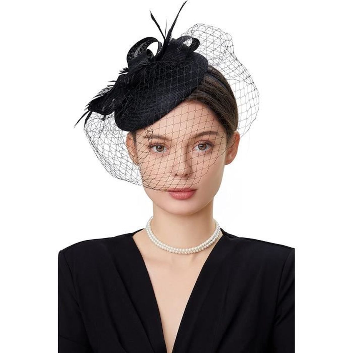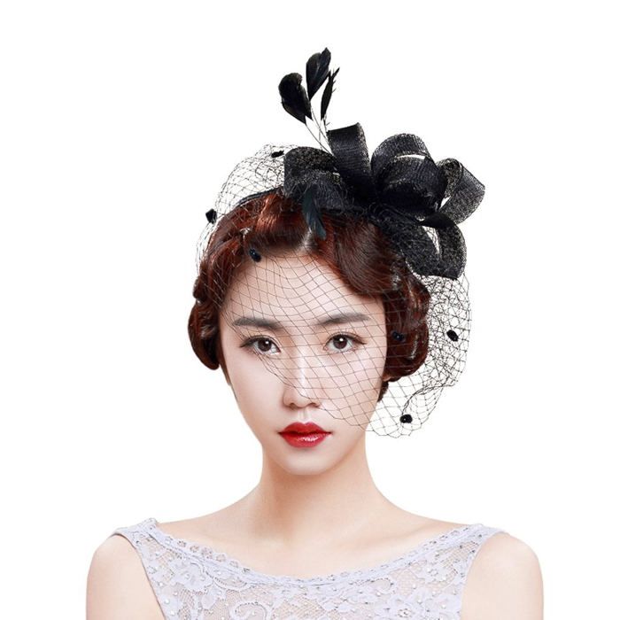 Vous rendre élégant et accrocheur - Un chapeau fascinateur élégant avec un design en maille pour femme. Spécifications : Matériau : maille et plumes et perles Couleur : Rouge/Noir/Bleu marine/Blanc/Claret Taille de l'article : diamètre 24 cm/9,4 pouces Poids du colis : 50 g. - Venez avec un bandeau amovible et un clip, vous donnant une variété de façons de le porter. - Fabriqué en maille et nylon de haute qualité. Faites en sorte que chacun soit élégant et charmant. Le forfait comprend : 1 * Fascinateur 1 * serre-tête 1 * Clip en métal Conseils chaleureux : 1) Mesure manuelle, veuillez permettre de petites erreurs de taille. Chapeau Haut De Forme DRESHOW Fascinator Chapeau Pour Femme Cocktail Tea Party Chapeau Thé Party Fascinator Clip de chapeau de magicien avec Veil Butler Chapeau grand chapeau -Taille unique pour la plupart des femmes. Ajoute un effet unique à vos cheveux et crée un look rétro. Portez-le sur la tête ou sur la poitrine selon votre préférence pour créer votre propre style vestimentaire. Chapeau Bibi En Plume Chapeau Mariage Femmes Dames Épingle À Cheveux... -Convient comme fascinateur de mariage, chapeau de thé, chapeau de cocktail, chapeau de veuve noire. Accessoires cadeaux idéaux : le look rétro peut être facilement assorti à différents styles de vêtements. Il peut être facilement fixé sans se soucier de tomber. Fascinator Chapeau Plume Mariage Dames Day Bandeau et Clip Cocktail Tea... Convient à toutes les femmes aux cheveux courts ou aux cheveux longs. Cadeau idéal pour votre adorable petite amie, fille ou épouse pour une fête, un mariage, un bal, Noël, Halloween, etc. Peut être porté sur la tête, la poitrine, les épaules, la taille, etc.