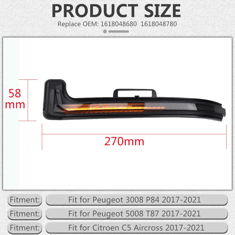 Donnez à votre voiture un look moderne et LED, améliorez la sécurité et la visibilité la nuit. Pièce Auto Peugeot 3008 5008 Clignotant DZSYINGCHUSM 1618048680 1618048780 Pour Peugeot 3008/5008/pour C5aircross Rétroviseur Clignotant Rétroviseur Indicateur Lumineux Répétiteur Clignotant Latéral (Color : La Gauche Ampoule Direction Orange Les clignotants sont généralement conçus dans des couleurs vives telles que l'orange ou le jaune pour augmenter les effets visuels. Pièce Auto Carrosserie neuve pour PEUGEOT 5008 II : Feu répétiteur droit, pièce équivalente et compatible à l'article d'origine, conforme à la législation... La mesure a permis une erreur. Résistance Stable, anti-vibration, économie d'énergie, faible consommation d'énergie, performances stables et longue durée de vie. Pour Peugeot 3008 5008 1618048680 1618048780 voiture rétroviseur indicateur clignotant lumière latérale clignotant lampe. Aucune modification supplémentaire n'est requise. Les clignotants peuvent être installés à l'avant, sur le... Remarque : la prise de vue en raison de la lumière et les différents affichages peuvent rendre la couleur de l'élément de l'image légèrement différente de la réalité. Il offre une garantie de sécurité de conduite et l'utilisation de clignotants permet aux gens de connaître à l'avance la direction de la voiture et de prendre des décisions correctes., Pour Peugeot 3008 5008., OE : 1618048680 1618048780., Facile à installer et durable à utiliser., Remplacement direct. Pour Peugeot 3008 5008 1618048680 1618048780 voiture rétroviseur indicateur clignotant lumière latérale clignotant lampe. Feu Clignotant Répétiteur Droit Pour PEUGEOT 3008 II Depuis 2017 Retroviseur Exterieur Neuf Uniquement le contenu de l'emballage ci-dessus, les autres produits ne sont pas inclus. Remplacez simplement l'ancien clignotant.
