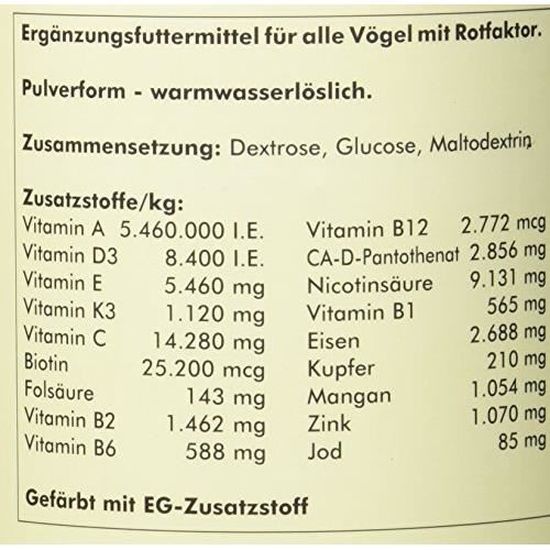 Facile à administrer : le produit est soluble dans l'eau, ce qui permet de l'administrer dans l'eau de boisson ou la pâte d'élevage, avec des doses recommandées de 1 à 2 grammes par litre d'eau ou 5 grammes par kilo de pâte. Supplément Mue Chardonnerets Dac Dacochol Complément Alimentaire Pour Oiseaux Aliment Mue Plumage Chardonneret Description du produit Avianvet Santé et bien-être animal Découvrez l’ensemble de la gamme Avianvet, une marque de référence dans le développement de solutions de haute qualité dédiées au bien-être et à la santé des oiseaux. Attirer le chardonneret au jardin Standards stricts, analyses microbiologiques et traçabilité pour garantir des produits sûrs. Production durable en petits lots pour assurer fraîcheur et réduire l’impact environnemental. Quiko Intense Rouge Complément Alimentaire pour Oiseaux avec Facteur... Avianvet propose des produits adaptés aux besoins spécifiques des éleveurs et des associations pajaros avianvet ok Vidéo de marchand Favorise le changement de plumage : ce complément alimentaire soutient également le processus de mue, aidant les chardonnerets à renouveler leur plumage de manière plus efficace et plus saine. Atelier Nubio - Microbiote & Nombril Complément alimentaire - 30 Les produits Avianvet sont-ils sûrs pour toutes les espèces d’oiseaux ? Oui, nos produits sont formulés pour répondre aux besoins nutritionnels spécifiques des oiseaux ornementaux et de l'ornithologie sportive. Ne pigmente pas les ailes : contrairement à d'autres produits, elle n'affecte pas la coloration des ailes, en concentrant son action uniquement sur le masque facial du chardonneret.