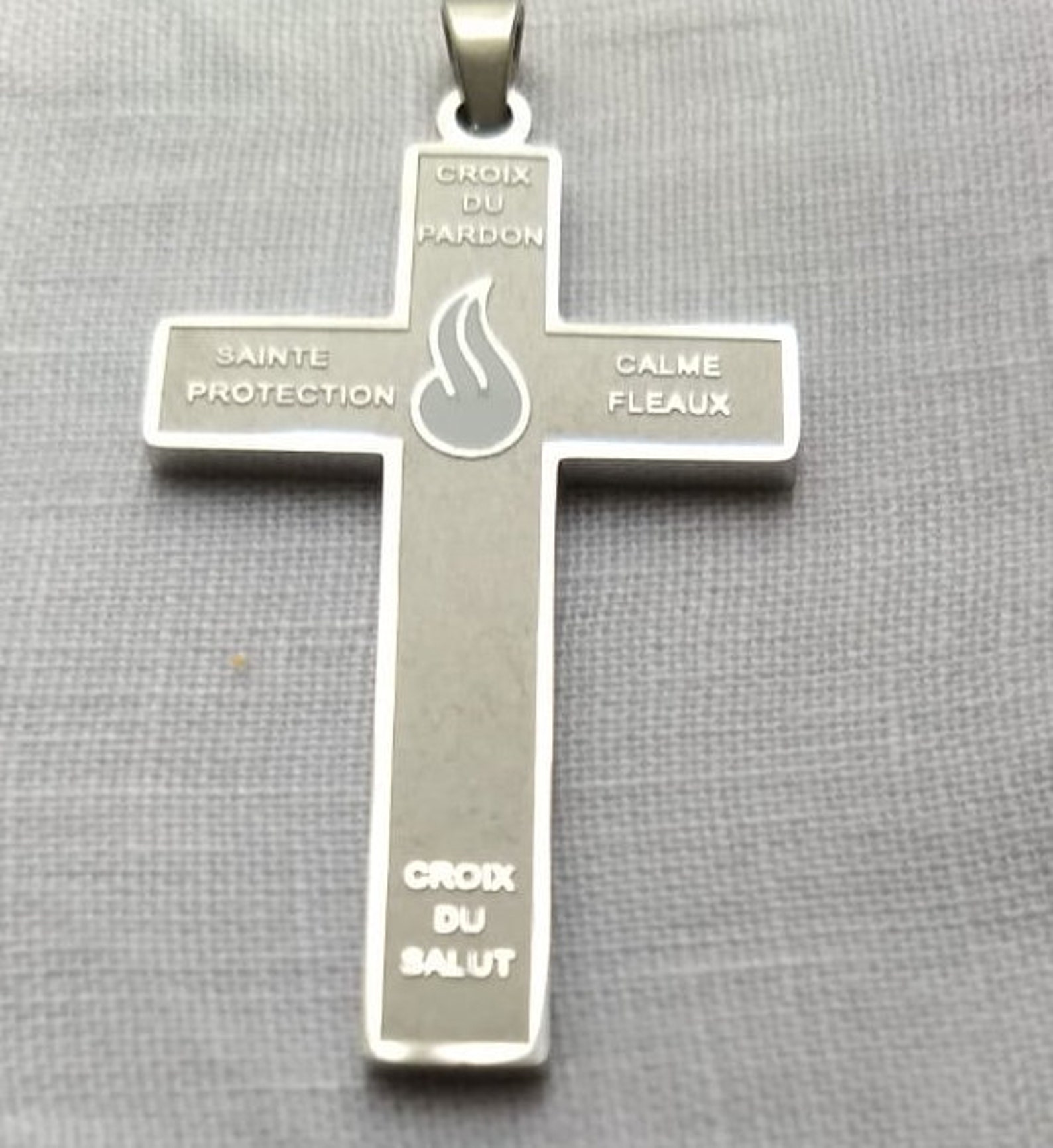 Cadeau pour toutes les occasions : confirmations, premières communions, anniversaires, Noël Quatrièmement, ils porteront le nom de « Croix qui calme les fléaux ». Croix Dévotion Cadeau Communion Croix Du Pardon De Marie Julie Jahenny Et Médaille Notre-Dame De La Bonne Garde, Argent Antique, Breloques De Protection Catholiques Fin Des Temps Sacramentels - France Croix De Lorraine Troisièmement, ils porteront le nom de « Croix de Sainte Protection ». Quelle est la signification de la Croix de Saint-Jacques Cruz del perdón de Marie Julie Jahenny con llama blanca Crucifijo de acero inoxidable Protección espiritual sacramental católica de los... Dimensions : 47 x 28 mm et poids : 9,7 g. – Cinquièmement, ils porteront la prière : « O Dieu, Sauveur crucifié, mets-moi le feu avec amour, foi et courage pour le salut de mes frères., » Flamme en émail blanc : au centre de la croix, la flamme blanche symbolise la lumière divine et identifie le révélé par Notre Seigneur à Marie-Julie Jahenny. – Deuxièmement, ils porteront le nom de « Croix du Salut ». Fabriqué à partir de matériaux en acier inoxydable 316L de haute qualité, et avec une flamme en émail blanc, il dispose d'un design finement détaillé. – Tout d'abord, ils porteront le nom de « Croix de Pardon ».