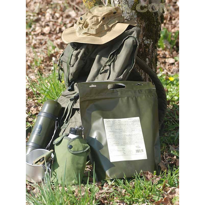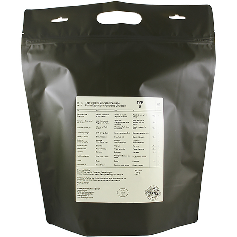 contenu: 1 jambalaya aux légumes 180 g 1 pâtes au soja à la bolognaise 180 g 1 muesli aux fruits complets 150 g 2 barres énergétiques Orifo 1 biscuit (12 pièces) 125 g 5 bonbons (Vivil Creme Life) 2 thé noir 1,75 g 1 thé à la menthe 2., 25 g 4 expresso 2 g 2 pêches au thé glacé Drink Frutti 3 sucres 4 g 1 shaker à épices , kcal: 4299 Poids: 1100 g Day Ration Pack Typ 1 - Trek'n Eat | | Hét 5 sterren... Pack Alimentaire 1 Jour Végétarien Day Ration Pack - Typ 4 (Végétariens) - Dark Werx Tactical Ration De Combat Tactique Pack ration journalière type 4 végétarien - Trek'n eat - Sport Paquet de nourriture pour une personne pour 1 jour Trek 'n Eat, ration journalière type VI - Paquet de nourriture végétarienne