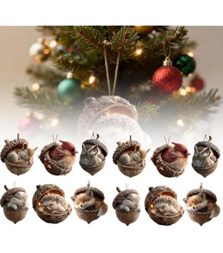 Décoration Sapin Forêt Confort Shinyrelief Lot De 10 Décorations De Noël En Forme D'animal De La Forêt Naturel à Suspendre Pour Sapin De Noël, Décoration Rustique Pour Noël, Maison, Cadeaux De Fête Lot 6 Glands Décoratifs Mignons 36 superbes dées de décoratons confortables pour Noël | Chrstmas Chandails tricotés confortables sur bois rustique avec pomme de pin sur... Jolies décorations en forme de gland : adorables motifs d'animaux à l'intérieur des coquilles de gland Choisissez parmi les renards, les hiboux et plus encore. Chacun ajoute une sensation ludique et confortable à votre espace. Parfait pour tout décor : idéal pour les arbres de Noël, les couronnes, les étagères ou les cheminées. Description : Contenu du colis : 1/6 x glands décoratifs en forme d'animal. Chaque décoration mesure 8 x 7 cm, petite mais attrayante. Convient pour les anniversaires, Noël ou les occasions spéciales. Achetez-en un ou un lot de six pour un affichage charmant. LOT 6 NCHORS ensemble couleurs rouge-gorge forêt // suspensons gland...
