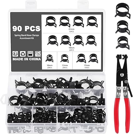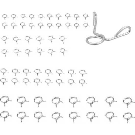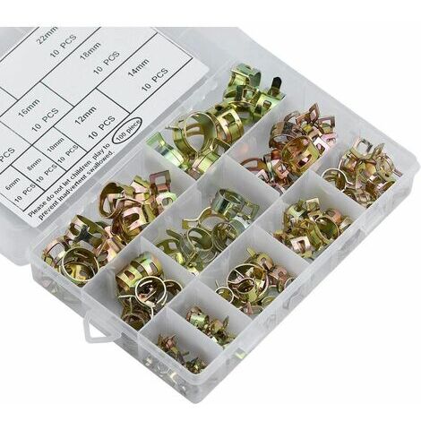 RYBTD CLIP À Ressort Tuyau Serre-Joints 100 PCS Collier Durite Essence Matériaux de haute qualité: Le clip à ressort est en acier galvanisé de haute qualité. Le collier avec une pince est plus durable que les rondelles à ressort, a une bonne force de serrage et est facile à retirer. 10 tailles de clips à ressort: Les diamètres intérieurs des clips à ressort sont de 5 mm, 6 mm, 7 mm, 8 mm, 9 mm, 10 mm, 11 mm, 12 mm, 13 mm, 14 mm. Chaque taille comprend... Colliers Serre-tuyaux Lot De 100 Clip à Ressort Tuyau Collier Serrage Durite Tuyau Essence 5mm Durable, antirouille, pliable et résistant à la corrosion ont une longue durée de vie. La conception circulaire équilibre le couple, résiste mieux à la pression et à la torsion tout en conservant sa belle apparence. Burkfeeg 100 Pcs Collier Serrage Durite Conduite de carburant Pince... ★ Design unique: le clip à ressort est une conception précise de la bague intérieure à 360 degrés, ce qui peut efficacement prévenir les dommages au pipeline. ★ Nombreuses applications: ces colliers de serrage à ressort sont utilisés pour les tuyaux, les tuyaux de gaz, les tuyaux d'air, les tuyaux d'eau, les tuyaux de carburant, les tuyaux en silicone ou les tuyaux de vidange, etc. Répondre à une variété de besoins. ★ Ensembles de tailles multiples: les ensembles comprennent 10 colliers de serrage de tailles différentes: 5 mm, 6 mm, 7 mm, 8 mm, 9 mm, 10 mm, 11 mm, 12 mm, 13 mm et 14 mm.