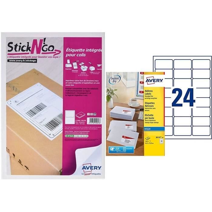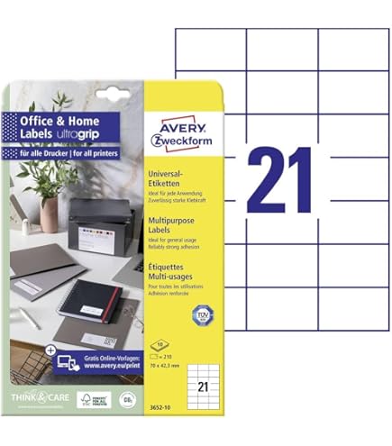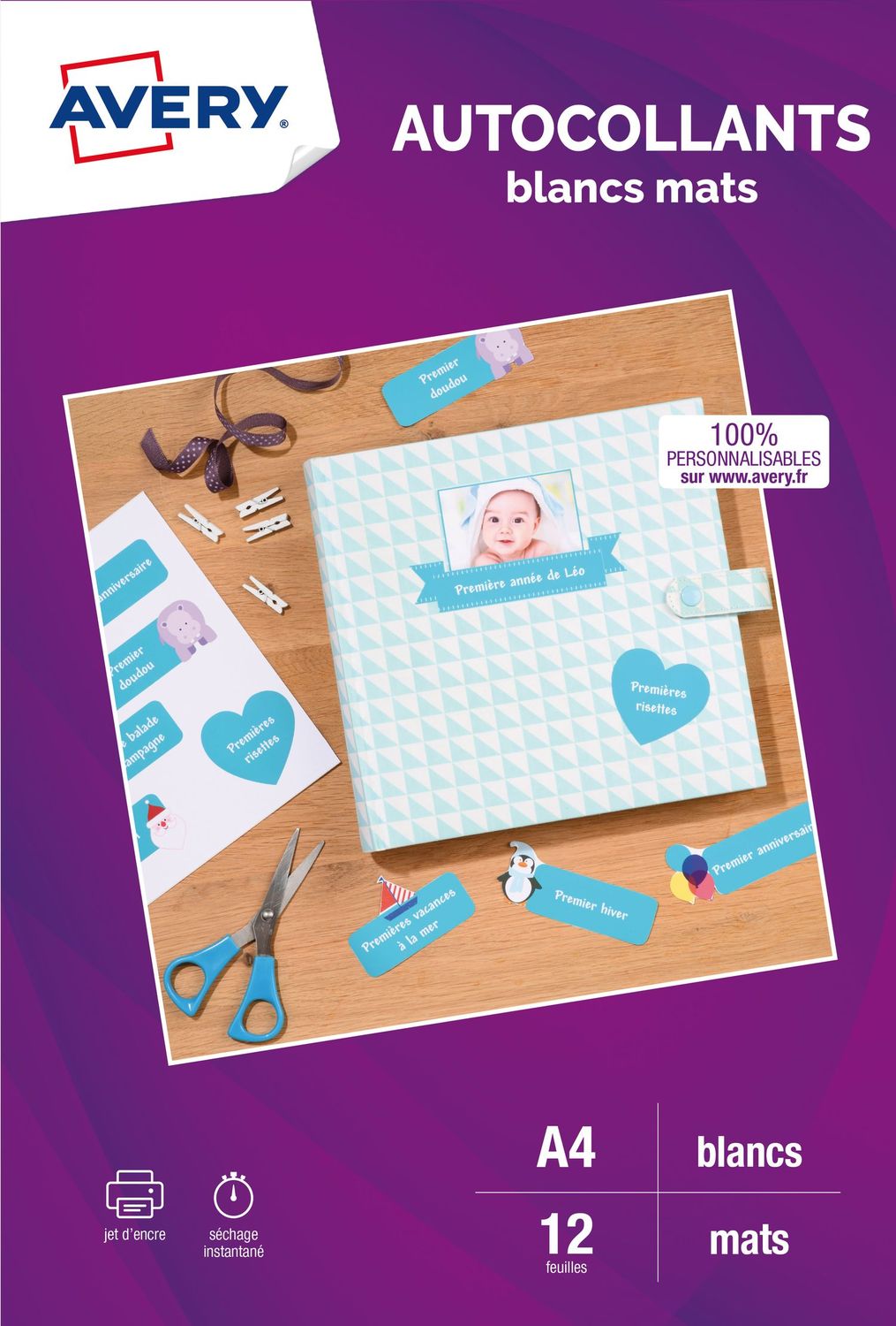 AVERY - Pochette de 100 étiquettes UltraGrip autocollantes Les étiquettes autocollantes universelles BaiWay sont respectueuses de l'environnement et durables : 100 % papier d'étiquette, sans acide, sans solvant et recyclable. étiquettes Adresse Livraison BaiWay Lot De 100 Feuilles D'étiquettes Autocollantes Universelles Autocollant Personnalisé Utilisation universelle grâce à la découpe libre également à la maison pour les bricolages faits maison en cuisine, comme étiquettes de congélation, de bière, de confitures ou pour bocaux de conserve/pots à épices/sacs à pâtisserie/pots de confiture. Conçues pour être utilisées dans des imprimantes Laser, Jet d'encre ou dans des copieurs, ces étiquettes écologiques multi-usages Office Star répondront également à vos besoins de tous les jours en matière d'étiquetage au bureau, à l'école ou à la maison Lot de 100 étiquettes autocollantes DIN A4 210 x 297 mm imprimables universel... Excellents papiers autocollants : en pure pâte à papier, traités antistatiques, résistants aux hautes températures, imperméables et sans bulles ni ondulations lors de l'impression. Sans ajout de blanchiment au chlore dans le papier, la couleur du papier n'est pas tout à fait blanc neige. Grande compatibilité : ces étiquettes adhésives A4 peuvent être utilisées pour les imprimantes laser, à jet d'encre, matricielles et les photocopieuses. En outre, il y a des papiers autocollants pour stylos, feutres, surligneurs, crayons de couleur et marqueurs. Dimensions : 210 x 297 mm, format A4., Nombre : 100 feuilles. Le papier autocollant BaiWay peut être imprimé avec des imprimantes courantes telles que les imprimantes à jet d'encre, laser, etc.