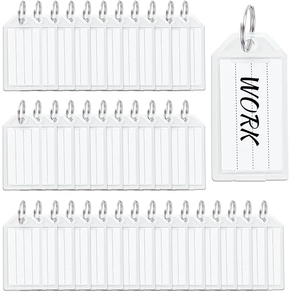 Plastique Clé Étiquette Avec Anneau Fendu Marque Bagage Étiquettes 56x29mm 5 Couleurs Pour Bureau H Tel 40 En 1 Kit Caractéristiques : l'étiquette est transparente des deux côtés, de sorte que vous pouvez obtenir plus de messages à partir de papier double face, faire une identité sur le bagage est pratique pour vous de comprendre rapidement ; traité avec un processus spécial sur la surface et le bord pour une sensation lisse au toucher, vous pouvez... Porte Clef Hotgod Lot De 100 étiquettes De Bagage En Plastique Avec Anneau Porte Anneau Porte Clé Dimensions de l’étiquette : 5,5 x 3 cm. La fenêtre de l’étiquette peut facilement s’ouvrir et se fermer, la carte peut être remplacée à chaque fois sans retirer la fixation de l’anneau. Hotgod Lot de 100 étiquettes de bagage en plastique avec anneau porte... Diamètre de l’anneau porte-clés : 2 cm., Quantité : 100 pièces. Utilisation pratique et en toute sécurité. Inclus dans la livraison : 100 étiquettes blanches avec anneau porte-clés. Inclus dans la livraison : 100 étiquettes en plastique avec anneau porte-clés.
