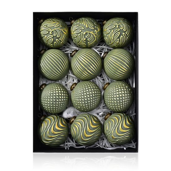 Convient pour différents paramètres : parfait pour une utilisation en intérieur sur les arbres de Noël ou dans le cadre de vitrines commerciales, ajoutant du charme partout où ils sont placés. Boules De Noël Rétro Vintage Lot De 12 Boules De Noël Décoratives Pour Sapin De Noël, Luxueuses Et Boules Noël Rétro Caractéristiques : *Style vintage : présente des finitions d'inspiration antique pour une décoration de vacances classique et élégante. Améliorez votre décoration : ces boules de Noël floquées décoreront votre maison et votre fête avec une atmosphère festive. sont faciles à suspendre et à retirer, et ajouteront de la et de la chaleur à votre période des fêtes Caractéristiques : Nom du produit : boule de Noël., *Matériau : plastique. Contenu de l'emballage : 12 boules décoratives de Noël. Taille substantielle] Avec 8 cm de diamètre, ces décorations sont parfaites pour faire une déclaration sur votre sapin de Noël ou dans le cadre de vitrines... * Affichage polyvalent : convient pour les arbres de Noël d'intérieur et les décorations de fenêtres commerciales. *8 cm de diamètre : fournit une taille substantielle pour une présentation visible sur les arbres de Noël et dans les fenêtres. Finitions anciennes classiques : avec des finitions vintage, ces boules décoratives apportent une élégance intemporelle à vos décorations de vacances, ce qui en fait une pièce remarquable sur n'importe quel arbre. Boule de Noël vintage en plastique vert rétro de 8 cm, décoration *Matériau en plastique : assure une construction légère et durable pour une utilisation sûre et durable. [Taille d'affichage optimale] Avec 8 cm de diamètre, ces décorations sont assez substantielles pour attirer le regard et améliorer votre atmosphère festive.