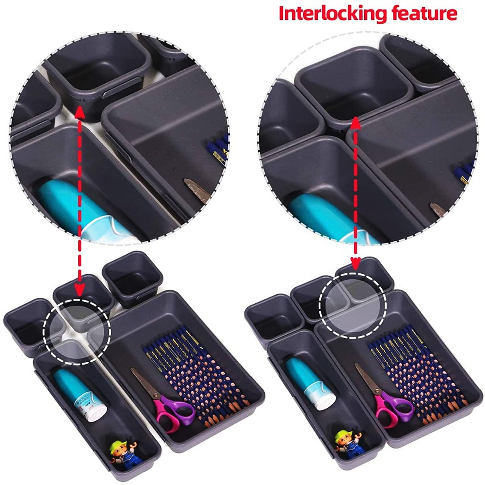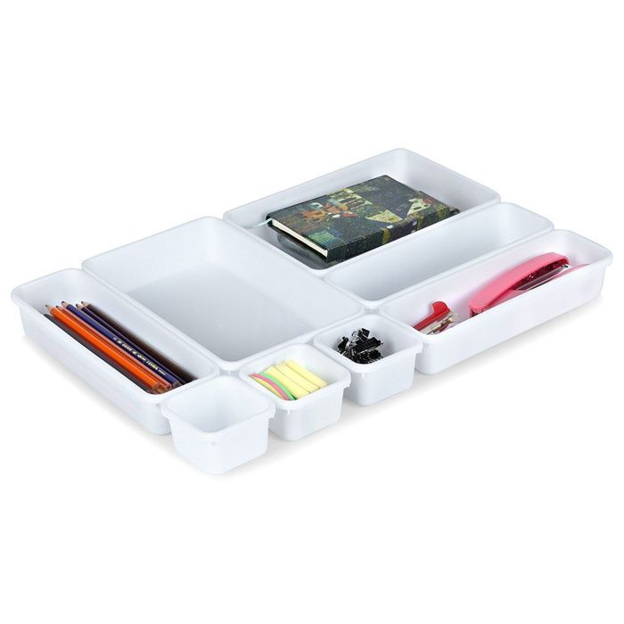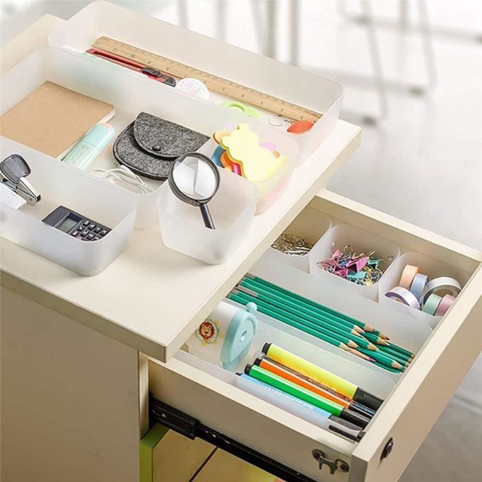 Radikor Lot de 16 Organisateurs de Tiroir, Rangeent Tiroir en Organisateurs de tiroir comprend 25 bacs de rangement en 4 tailles différentes, Contient : 23 x 15 x 5 cm (3 pièce), 23 x 7,5 x 5 cm (6 pièces), 15 x 7,5 x 5 cm (8 pièces), 7,5 x 7,5 x 5 cm (8 pièces), Boite rangement plastique vous permettant de personnaliser en différentes combinaisons pour le rangement de vos articles Organisateurs Tiroir Transparents Radikor Lot De 15 Organisateurs De Tiroir, Rangement Tiroir En Rangement Makeup organisateur tiroir bureau comprend 16 bacs de rangement en 4 tailles différentes, Contient : 23 x 15 x 5 cm (2 pièce), 23 x 7,5 x 5 cm (2 pièces), 15 x 7,5 x 5 cm (6 pièces), 7,5 x 7,5 x 5 cm (6 pièces), Boite rangement plastique vous permettant de personnaliser en différentes combinaisons pour le rangement de vos articles. Grâce à son design transparent, vous pouvez trouver rapidement exactement ce dont vous avez besoin, quand vous en avez besoin, vous pouvez voir ce qui se trouve à l'intérieur sans fouiller ou désordre, tiroir rangement vous offrant un style de soigné. Xpieoyr Lot de 7 Organisateurs de Tiroirs en Transparent, Rangeent... 【Antidérapant durable】L'organisateur de tiroir polyvalent est équipé de d'un coussinet en silicone antidérapant, 70 coussinets en silicone supplémentaires sont inclus, il suffit de les coller sur le fond des plateaux en plastique pour les rendre antidérapants. rangement maquillage tiroir peut stocker et classer de petits objets tels que des outils de maquillage, des accessoires de vanité, des ustensiles de cuisine et des fournitures de bureau, ren d tout organisé. rangement et organisation de cuisine. 【Facile à nettoyer】rangement coiffeuse un simple essuyage avec un chiffon doux ou un rinçage rapide à l'eau permet d'éliminer la poussière et la saleté des séparateurs, Gardez votre bureau ou tiroir bien rangé et ordonné,aidez-vous à avoir un style de vie propre et efficace.