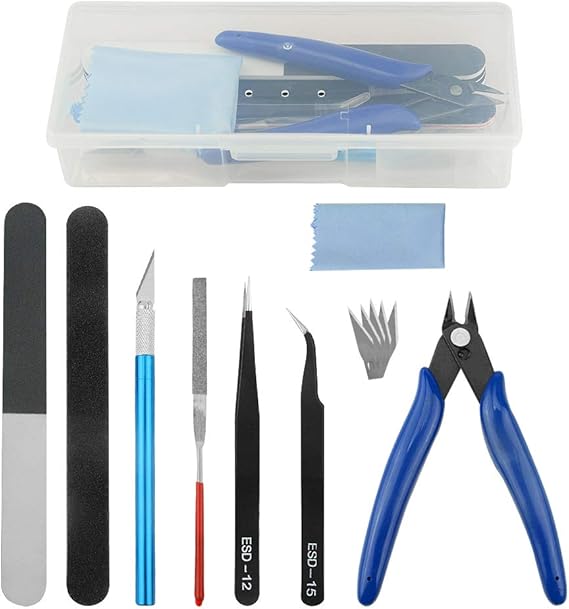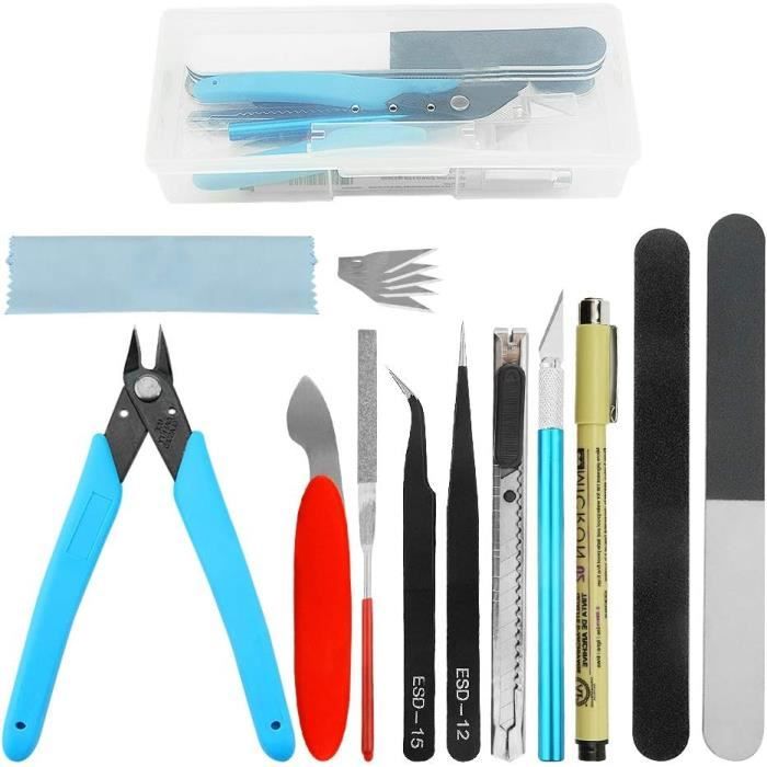 1 boîte de 5 lames de rechange., 5 pinces à épiler., 5 limes. 1 séparateur de modèle., 2 tournevis., 1 couteau., 1 chiffon de nettoyage., 1 boîte transparente. Il est très utilisé dans le domaine de la fabrication de jouets, tels que les voitures, les robots, les dessins animés, les bâtiments, les avions et d'autres objets d'artisanat. Le kit d'outils de base pour modélisme est adapté pour les débutants et les confirmés. WMYCONGCONG Gundam Modell-Werkzeug-Set für Modellbauer, Grundwerkzeuge 3 barres polies double face., 1 bloc de polissage., 1 règle en acier. Règle en acier : fabriquée en acier, facile à mesurer. Grands cadeaux: vous pouvez présenter cet ensemble d'outils de modelage en cadeau à vos amis directement, ou utiliser les outils de modèle pour créer un... Kit d'outils économique et complet : Le kit comprend 1 x pince latérale, 1 x couteau à stylo et 1 boîte de lames de rechange (5 pièces), 5 x pinces, 5 x limes, 3 x barre polie double face, 1 x bloc de polissage, 1 x règle en acier, 1 x séparateur de modèles, 2 x tournevis, 1 x couteau, 1 x chiffon anti-poussière, 1 boîte transparente. Caractéristiques : 1, Graver et 5 lames de rechange : serré, poignée en plastique et design antidérapant, conçu avec un capuchon de protection de sécurité., 2., Pince : pince latérale, fabriquée en acier inoxydable, construction solide, durable., 3., Pince à épiler : 2 types de pinces, antistatique, ne rouille pas facilement, facile à tenir de petites pièces, la pointe est pointue., 4., Barres polies : double face, 2 styles, facile à rendre la surface du modèle lisse., 5., Lime : fabriquée en métal, répond à vos besoins, haute dureté, poignée lisse, surface grain uniforme, broyage rapide. Large application : L'ensemble d'outils de base pour modéliste convient aux débutants et aux modélistes professionnels. Kit Outils Maquettes 22 Pièces Construction Voiture WMYCONGCONG Lot De 18 Kit D'outils De Modélisme Kit D' Outils De Base Pour Modéliste Compatible Avec Gundam Modèle De Voiture D'avion Construction Réparer Modelisme Voiture Boîte Outils Maquettiste Complète XZN – jeu de douilles à trois cannelures carrées 1... – Grandado Léger et portable : Emballé dans une boîte transparente solide, léger et pratique, il est facile à transporter et à installer.