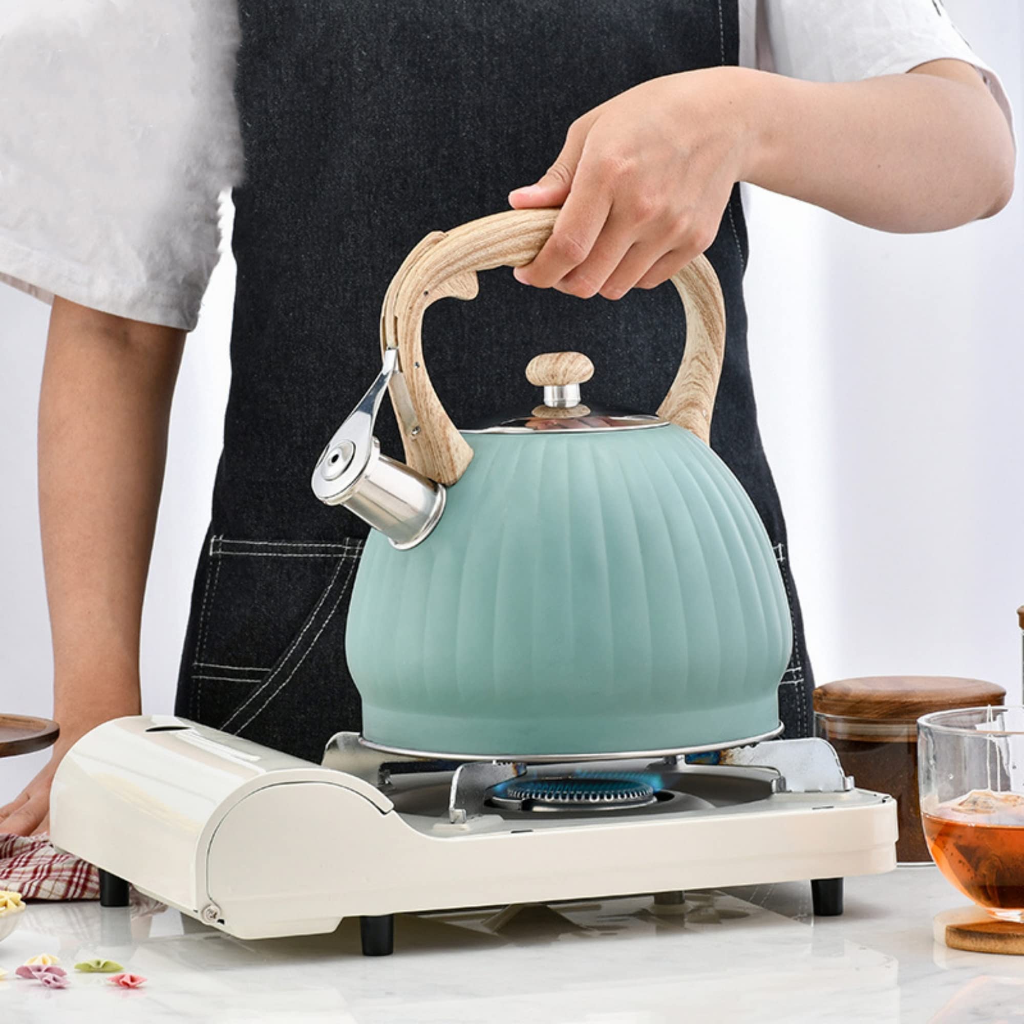 Descriptif & Caractéristiques : Cette bouilloire à sifflet en acier inoxydable est utile pour vous aider à faire bouillir de l'eau facilement, ce qui vous apportera une grande commodité., 1., Fabriqué à partir d'un matériau en acier inoxydable, extrêmement et stable., 2., Conçu avec une poignée isolée thermiquement enduite de silicone, il est ergonomique et confortable à porter., 3., La poignée pliable et l'aspect compact vous permettent de le transporter et de le ranger facilement. En raison de la mesure manuelle, il existe une tolérance dans la taille du produit. Bec sifflet fonctionnel : le bec de cette bouilloire sifflante sifflera pour vous rappeler quand l'eau bout. Taille: 18,5x19cm / 7,28x7,5 pouces , Capacité totale : 1,8 L SUC-théière à fond plat Théière Sifflante, Bouilloire Sifflante 3L Vert Note: En raison des effets d'éclairage et des angles de prise de vue, il existe une différence de couleur dans le produit, veuillez comprendre. Matériel: acier inoxydable Bouilloire Sifflante en Acier Inoxydable, Induction Gaz Théières pour Cuisinière, Faciles a Nettoyer Pour Cuisine, Camping, Pique-nique (Bleu,3.0L) · 3.0L... Matériau de première classe : fabriquée à partir d'un matériau en acier inoxydable et stable, notre bouilloire de 1,8 L a une longue durée de vie et peut vous aider à gagner du temps sur l'eau bouillante. Bouilloire sifflante en acier inoxydable Larges applications la gamme d'applications de cette bouilloire est très large. Totalement portable : cette théière à eau en acier inoxydable peut vous apporter une grande commodité, qui a une poignée pliable et une apparence compacte, de sorte que vous pouvez la transporter et la ranger facilement. Bouilloire 1.8L Induction Bouilloire Sifflante à Fond Plat De 2,5 L Pour Ustensiles De Cuisine (beige Bouilloire Inox 1.8L Sifflet Pour Cuisinière Induction À propos de cet article Sifflet d'ébullition : lorsque l'eau bout, la vapeur émet un son à travers la pièce sonore du piano à l'intérieur du couvercle, vous rappelant d'éteindre le feu, empêchant efficacement les brûlures à sec et réduisant les risques potentiels de sécurité Il est fabriqué en acier inoxydable de bonne qualité pour une utilisation durable. Notre bouilloire... Vous n'avez donc pas à vous soucier d'oublier d'éteindre le feu.