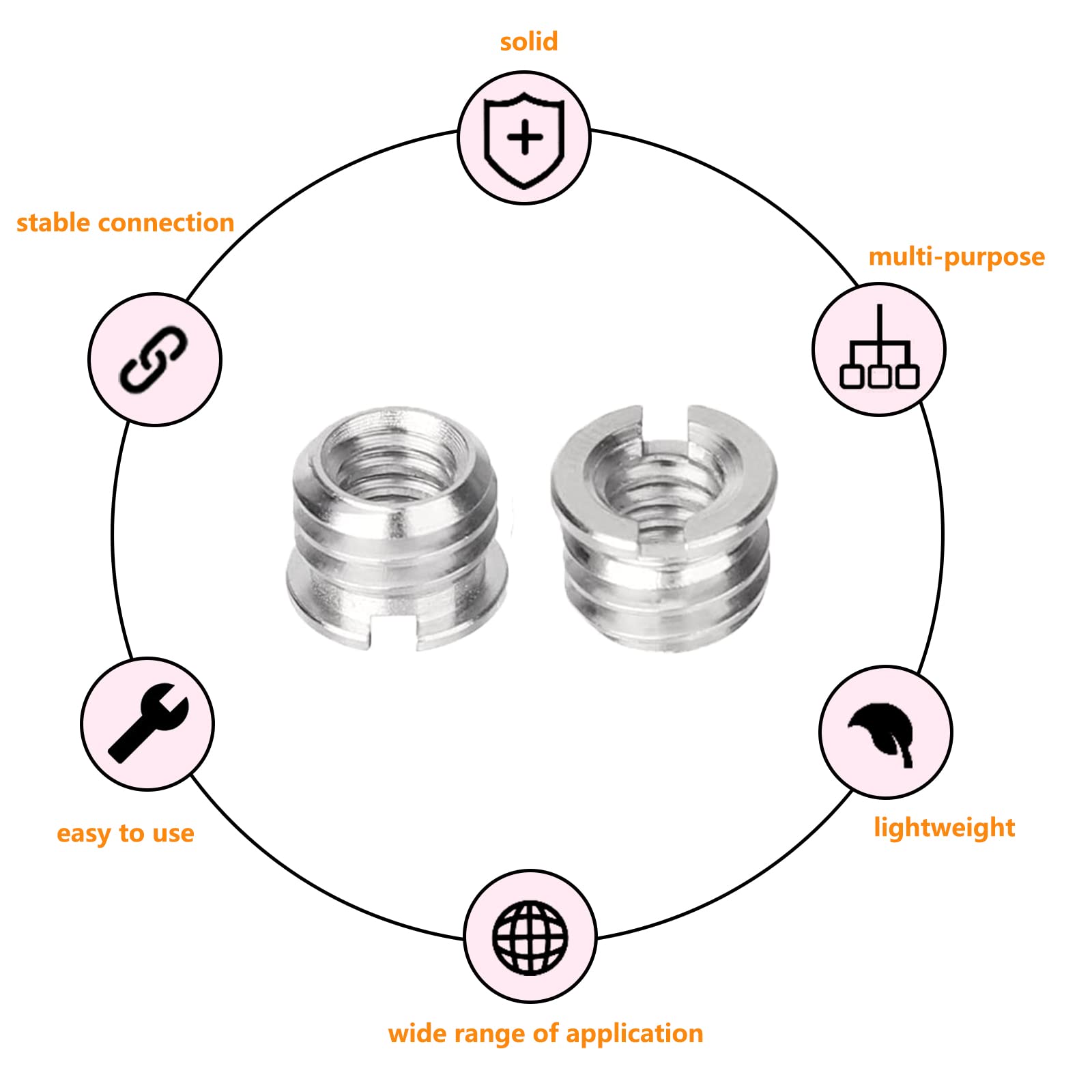 PATIKIL Mic Support Adaptateur 3/8 Femelle à 5/8 Mâle Cuivre Mic Vis Adaptateur pour Microphone ADAPTATEUR DE MONTAGE à vis pour trépied appareil photo mâle vers... Pack Adaptateurs 1/4 3/8 5/8 ZoeTekway Lot De 2 Adaptateurs Filetés Pour Trépied 3/8" Vers Adaptateurs Support Micro Caméra [Ensemble multifonctionnel] : cet ensemble contient 8 adaptateurs de filetage et vous offre une large gamme d'utilisations. Le matériau en aluminium a non seulement une bonne résistance et une bonne résistance à la rouille, mais réduit également efficacement le poids, rendant l'adaptateur plus portable et plus facile à transporter. Convertit un pas de vis de trépied de 3/8'' à 1/4''. Fabriqué en aluminium. Compatible avec les modèles 806, 809 et 816. Globe icon. Conçu en Italie Il comprend un filetage femelle 2 3/8 vers un filetage mâle 1/4, un filetage femelle 2 1/4 vers un filetage mâle 3/8, un filetage femelle 2 3/8 vers un filetage mâle 5/8-27 et un filetage femelle 2 1/4 vers Adaptateur fileté mâle 5/8 -27., Quelle que soit la taille de l'adaptateur dont vous avez besoin, cet ensemble est là pour vous. Il vous suffit de brancher l'adaptateur pour convertir entre des fiches et des prises de différentes tailles. Que vous soyez un photographe professionnel ou amateur, ces adaptateurs répondront à vos besoins et fourniront un support solide et connexion. [Options de connexion multiples] : ces adaptateurs filetés conviennent à la plupart des appareils, y compris les pieds de microphone, les supports d'appareil photo, les supports d'enregistreur et autres supports, etc.