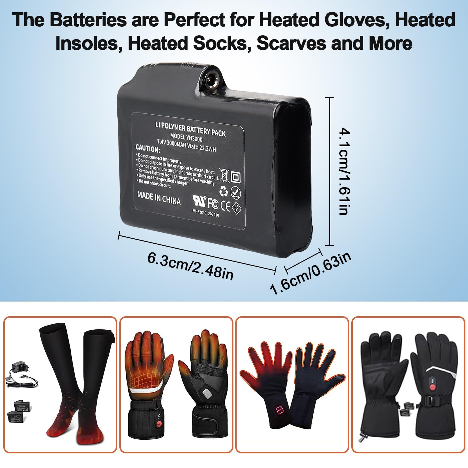 【Service professionnel】Pour toute question, n'hésitez pas à nous contacter. Batterie Vêtement Thermique EIHBIEA Lot De 2 Batteries Rechargeables Au Lithium Polymère 5 V 6000 MAh Pour Chaussettes Batterie Chauffante Li-po Spécifications : Tension : 7,4 V Capacité : 5 000 mAh Matériau : Coque ignifuge Type de batterie : Batterie lithium-polymère Norme de batterie : Batterie de classe A Tension de charge : 8,4 V Quantité : 2 batteries rechargeables avec chargeur Protection de sécurité : durée de vie de la batterie intégrée avec fonctions de protection multiples intégrées, qui offrent une protection contre les surtensions, les surcharges, les surintensités et les courts-circuits, vous offrant un circuit de tension stable Petit et pratique Facile à transporter en déplacement ou en voyage 【Large application】 Batterie pour gants, chaussettes et bonnets chauffants, gants de ski, gants de moto, cagoules, mitaines, chaussettes, semelles chauffantes et sous-vêtements thermiques. Les piles rechargeables de 3,7 V sont-elles compatibles avec tous les... Mécanisme de protection intégré pour une charge et un fonctionnement en toute sécurité. Large gamme d'applications Batterie rechargeable au lithium polymère, idéale pour les gants, chaussettes, bonnets, cagoules, semelles chauffantes, sous-vêtements thermiques, mitaines, etc. Retirez la batterie des gants ou chaussettes chauffants lors de la charge. RD XT 800 S1: Lot de batteries, Li-polymère, 3,7 V, 1 800 mAh chez Pour une expérience d'achat optimale, veuillez vérifier la taille et l'interface de la batterie avant l'achat afin d'éviter tout achat inapproprié. 【Légère et durable】La batterie est compacte, légère et amovible, ce qui la rend facile à transporter et à remplacer.