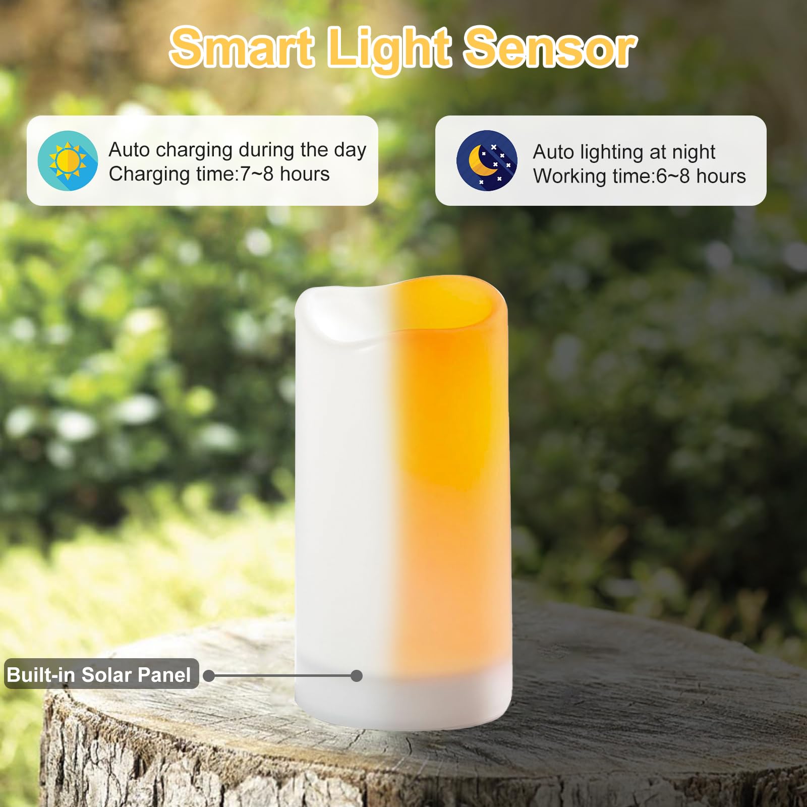 Bougie Chauffe Plat Led Rechargeable Bougies Solaires KIYTARBOO - Lot De 6 LED étanches IP44 Pour Extérieur Bougies LED étanches Cela élimine le besoin d'allumages manuels et fait gagner du temps et des efforts, ce qui est très pratique. Décoration Jardin Patio IP44 Lot De 2 Bougies Solaires D'extérieur étanches Sans Flamme LED Avec Capteur De Lumière Intégré, Minuterie Intelligente, Du Crépuscule à L'aube, Marche/arrêt Automatique, Batterie Rechargeable, 7,6 X Décoration Jardin Terrasse Solaire 【 Allumage et arrêt automatique 】 : bougie solaire d'extérieur, les bougies solaires d'extérieur fonctionnent automatiquement. 12 bougies LED solaires effet flamme | Bougeoirs et bougies à LED... TOOAD 6 bougies solaires clignotantes Bougies chauffe-plat LED sans... Décoration parfaite pour l'extérieur : ces bougies solaires d'extérieur sont idéales pour les mariages à la maison et dans le jardin, les fêtes en plein air et les décorations de festival. 【 IP44 Design imperméable 】 Ces bougies solaires d'extérieur imperméables sont fabriquées en PP de haute qualité et matériau imperméable, car elles sont conçues pour résister à diverses conditions météorologiques telles que la pluie, la neige et le vent. En outre, elles sont idéales pour créer l'ambiance de votre chambre, véranda et patio. Il suffit de les placer dans un endroit ensoleillé. Leur structure imperméable garantit une fonctionnalité continue même en cas de mauvais temps, afin que vous puissiez profiter de leur beauté tout au long de l'année. Bougies solaires : ces bougies solaires sont équipées de cellules solaires hautement efficaces qui convertissent la lumière du soleil en énergie électrique et l'utilisent la nuit.