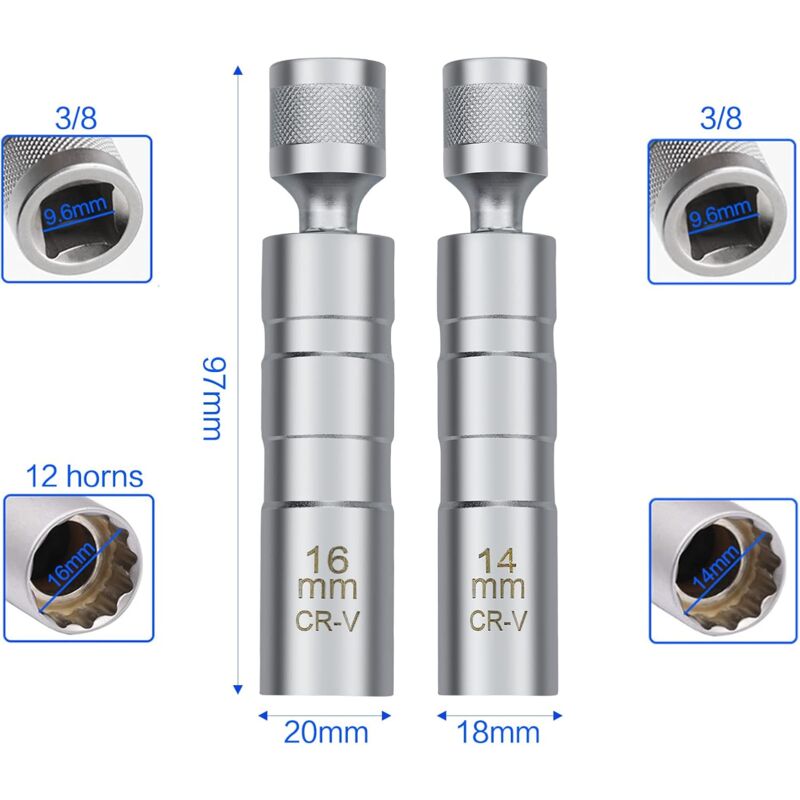 Clé Flexible Pivotante Mécanique Lot De 2 Clés à Bougie D'allumage 14 Mm 16 Mm Bougies D Outil Démontage Bougie Allumage Clé Bougie 16mm Sourcing Map Allumage Spark Bougie Clé Ensemble Double Extrémité Clé Cle A Bougie 16mm Grâce à la rotation flexible à 360 degrés, la clé à bougie d'allumage a un degré de flexibilité plus élevé et permet d'accéder aux zones étroites. Contrairement aux joints en caoutchouc traditionnels, l'aimant intérieur de cette douille pivotante saisit fermement vos bougies d'allumage sans s'user, de sorte que vous pouvez toujours... Ensemble complet de clés à bougie d'allumage de 14 mm et 16 mm - Ce kit comprend deux clés à bougie d'allumage de qualité supérieure dans les tailles les plus courantes de 14 mm et 16 mm, qui sont parfaites pour le retrait et le montage des bougies d'allumage dans la plupart des modèles de voitures et de motos. Effet magnétique pour une manipulation sûre : chaque clé à bougie d'allumage dispose d'un aimant intégré qui maintient fermement la bougie dès qu'elle est desserrée. Design flexible et pivotant pour une mobilité maximale : la tête pivotante de la clé permet un ajustement flexible à différents angles, de sorte qu'elle peut être facilement utilisée même dans des espaces restreints ou des zones de moteur difficiles d'accès. Lot de 2 clés à bougie d'allumage 14 mm et 16 mm, aimantées universelles et flexibles pour enlever les bougies d'allumage, connecteur de bougie d'allumage magnétique flexible et pivotant pour la réparation automobile Matériau de qualité supérieure - Durable et stable - Les clés à bougie d'allumage sont fabriquées en matériau robuste qui résiste à l'abrasion, à la flexion et à la corrosion. La surface est lisse et polie pour minimiser les frottements et garantir une longue durée de vie - Même en cas d'utilisation quotidienne dans les ateliers, l'outil conserve sa stabilité Utilisation universelle pour les réparations automobiles et plus encore. CSPARKV 2 Clés universelles à Griffes Réglables Pour Serrer Et Déserrer...