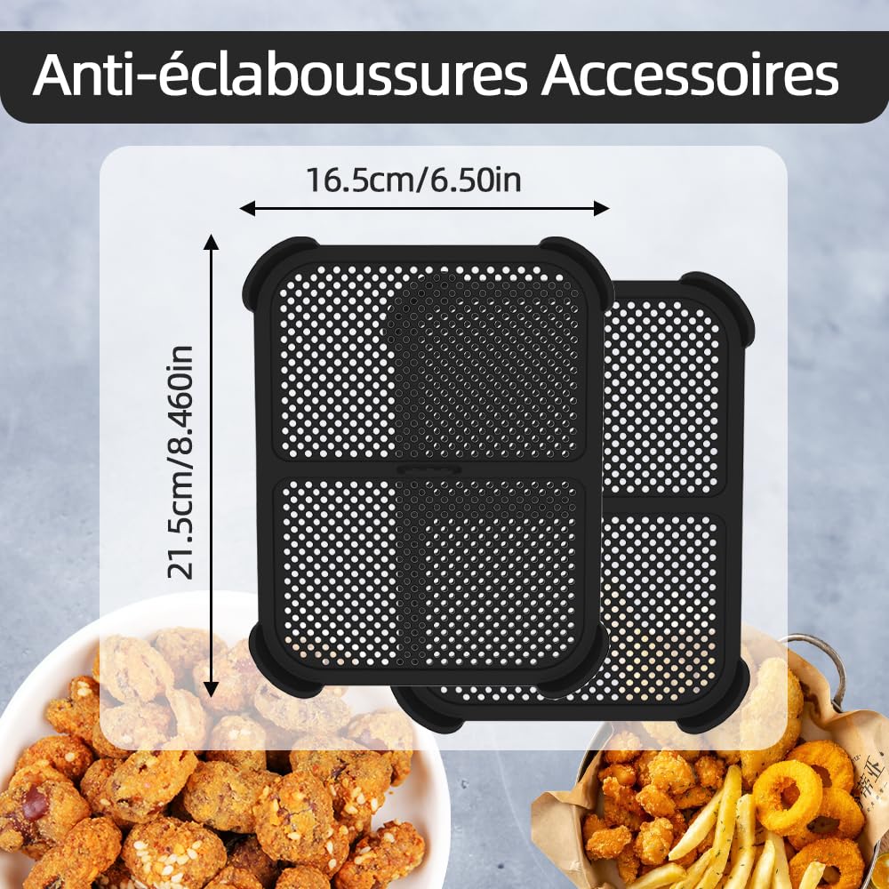 Ninja AF400EU Lot de 2 protections anti-éclaboussures en acier Prévention des éclaboussures : La grille de précision en acier inoxydable du pare-éclaboussures retient efficacement la graisse et les débris alimentaires avant qu'ils n'atteignent l'élément chauffant, réduisant ainsi le temps de nettoyage ! Grille Magnétique Anti-graisse HA BIN Lot De 2 Pare-Éclaboussures Magnétiques En Acier Inox à Mailles Pare-éclaboussures Friteuse Air Un accessoire indispensable pour votre friteuse à air ! Tamis cuisine Rösle acier inox mailles fines 0,5mm Pare-éclaboussures magnétique en acier inoxydable, 2 pièces Pare-éclaboussures à mailles fines, accessoires pour friteuse à air chaud Ninja Foodi Max Dual Zone... Matériaux de haute qualité, durables et résistants : La grille en acier inoxydable de cette protection anti-éclaboussures pour friteuse à air est résistante à la graisse et à la corrosion. Remarque : Attendez que l'appareil refroidisse avant de le retirer. Votre friteuse fonctionne ainsi plus efficacement, cuisant les aliments plus uniformément, gagnant ainsi du temps et améliorant les résultats de cuisson. Il se fixe magnétiquement à l'élément chauffant, le protégeant efficacement des projections de graisse et de nourriture sans restreindre la circulation de l'air. Utilisez la brosse fournie pour le nettoyage. Compatibilité parfaite : Ce pare-éclaboussures pour friteuse à air est compatible avec les friteuses à air Ninja AF400EU et Ninja AF451EU.