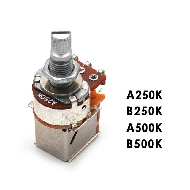 POTENTIOMÈTRE PARTSLAND 250K A250K AUDIO 24 mm MÉTRIQUE POUR BASSE OU... Application : le bouton a une valeur de résistance de A250K, qui peut être utilisé pour différents types d'instruments tels que la basse et la guitare électrique, avec une large gamme d'applications. Fonction : ce bouton est un potentiomètre, utilisé pour contrôler le volume, la tonalité et d'autres paramètres d'une guitare électrique ou basse, ce qui le rend plus adapté à différents styles de jeu. Installation Facile Bricolage Musiclily Lot De 2 Potentiomètres Métriques Pour Guitare A250k 18 Kit Remplacement Pots Design : le bouton est conçu avec une poignée de 18 mm de long, qui est confortable à tenir et lisse à tourner, ce qui facilite l'utilisation et le contrôle du volume et de la tonalité de la guitare électrique. Convient aux guitares électriques Fabriqué en alliage métallique Taille métrique, tige fendue de 18 mm, tige moletée de 6 mm de diamètre Cône audio A250K Contenu de l'emballage Matériau : le grand bouton de volume de potentiomètre est fabriqué en métal, qui a une excellente durabilité et résistance à la corrosion et peut être utilisé pendant une longue période sans vieillissement ni rouille. Pack De 2 Big A250K Taper Potentiometer Tone Pots Alpha Pour Guitare