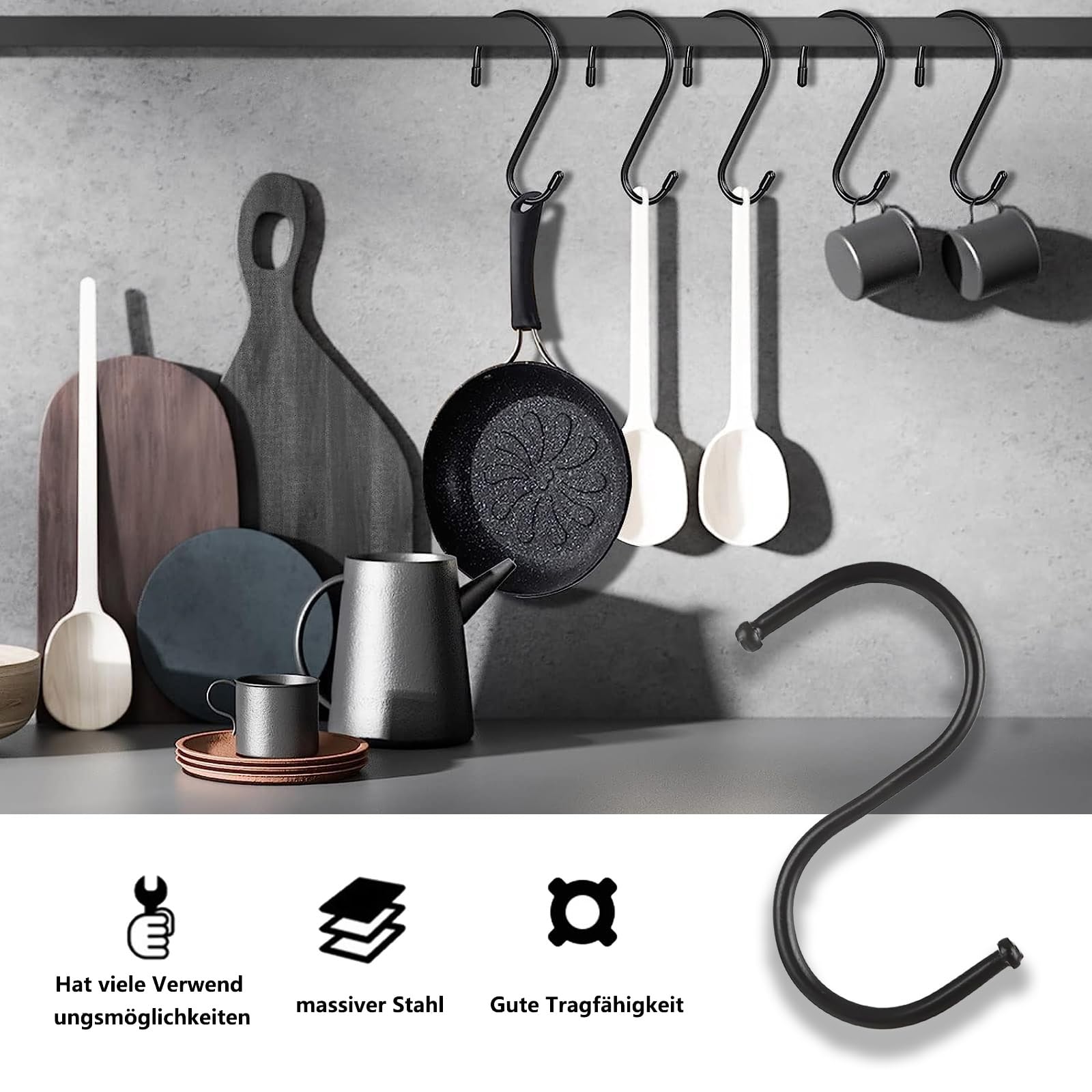 Pack 20 Crochets En S Robustes Boucle Sécurité Crochets Dotés de picots aux extrémités Chaque crochet en S est constitué d'un caoutchouc rond de couleur rouge aux deux extrémités afin d'éviter les coupures accidentelles et les situations désagréables lors de l'utilisation. Accroche Ustensiles Vêtements Mnixy Lot De 20 Crochets En Forme De S Pour Vaisselle, Poêles Crochet Garage Rangement Domaines d'utilisation : Le produit est idéal aussi bien pour un usage domestique que professionnel, vous pouvez utiliser les crochets dans votre armoire pour accrocher facilement vos vêtements afin de tout garder en ordre, ou vous pouvez utiliser les cintres en S pour accrocher vos ustensiles dans la cuisine ou dans la salle de bain pour accrocher des serviettes et des peignoirs. Patères Murales Crochets Pour La Maison Chambre À Coucher Forme De... CINTRE,3--Crochets multifonctions à 4 dents, nouveau crochet de porte... ✅ Environnement d'utilisation : le produit est indéal aussi bien pour un usage domestique que professionnel, vous pouvez utiliser les crochets dans votre armoire pour accrocher facilement vos vêtements afin de garder tout en ordre, ou vous pouvez utiliser les cintres en forme de S pour accrocher vos ustensiles dans la cuisine ou la salle de bain pour accrocher des serviettes et peignoirs. ✅ Qualité supérieure : le crochet est fabriqué en métal résistant de très haute qualité, solide et épais, conçu pour résister à des charges lourdes sans se déformer. ✅ Embouts à l'extrémité – chaque crochet en S est constitué d'un caoutchouc arrondi de couleur rouge sur les deux extrémités, afin d'éviter les coupures accidentelles et désagréables situations pendant l'utilisation. Excellente qualité Le crochet est fabriqué en métal durable de la plus haute qualité, solide et épais, conçu pour résister à des charges lourdes sans se déformer. En outre, grâce à la bonne taille des cintres en S, il est plus facile de passer à travers de petits trous pour une variété d'utilisations. Crochets en forme de S en métal Crochets en forme de S, fabriqués en métal, parfaits aussi bien pour un usage domestique que professionnel, pour optimiser les espaces pour accrocher facilement n'importe quel objet sans besoin de clous, de vis ou d'autocollants.