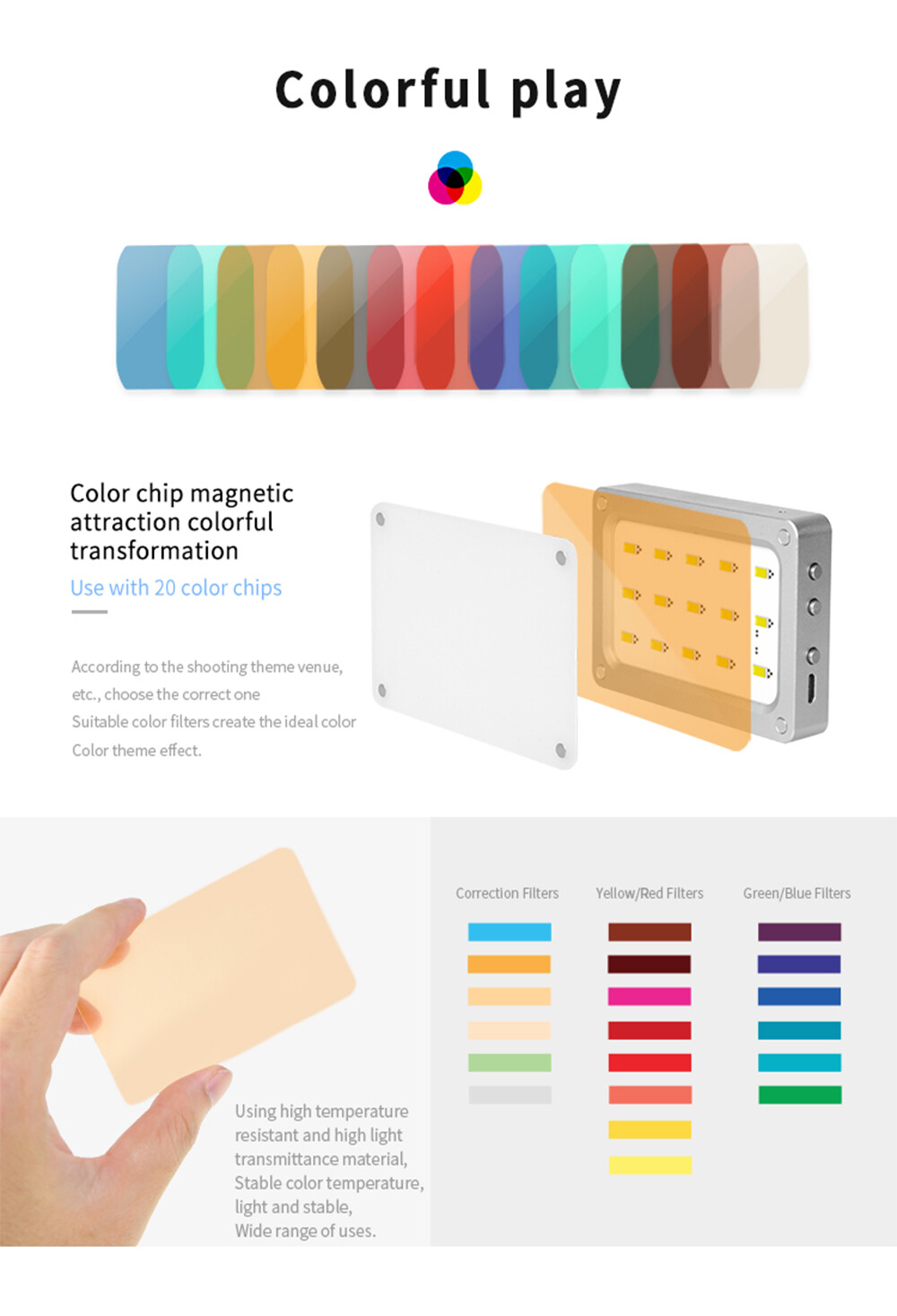 Remarque : Veuillez ne pas fixer les filtres à gel à la lampe de réglage, sinon ils seront fondus et la lumière LED n'est pas incluse. Lot de 20 filtres de remplacement Kiwi Vapor - ADNS Gel coloré pour éclairage de films, vidéo, photo, scène, théâtre, fête et DJ. Filtres Caméscope éclairage Selens Lot De 20 Filtres Universels En Gel Pour Caméscope - 9,5 X 6,5 Gels Couleur éclairage LED Selens Lot de 20 filtres universels gel pour caméscope LED Vidéo Flash Caractéristiques : Forme : Carré Dimensions du filtre : 9,5 x 6,5 cm Couleur : 14 effets de couleur, 6 corrections de couleur Les filtres ou gels d'éclairage colorés sont souvent utilisés comme lumières d'accentuation ou pour ajouter des couleurs spectaculaires aux arrière-plans ou aux parties sélectionnées d'une scène pour des effets artistiques. Facile à transporter Livré avec une pochette. Selens Lot de 4 filtres en gel 40 x 50 cm pour flash CTO, lumière... Remarque : Veuillez ne pas fixer le filtre à gel à la lampe de modelage, sinon ils seront fondus et la lumière LED n'est pas incluse. Fabriqué en matériau à haute fidélité, température de couleur uniforme et faible perte. Andoer AD-96 Mini Portable sur l'appareil photo LED vidéo Fill-in Light... Contient 20 filtres : 14 effets de couleur, 6 corrections de couleur et le sac de rangement organisé. Lot de 20 gels colorés Vous pouvez choisir la couleur dont vous avez besoin pour obtenir un style d'éclairage étonnant. La luminosité des lumières n'est donc pas réduite de manière excessive. Description du produit Selens Universal Gel Beleuchtung Filter Kit Hergestellt aus Material mit hoher Lichtdurchlässigkeit, gleichmäßiger Farbtemperatur und geringem Verlust. Dimensions du filtre : 9,5 cm x 6,5 cm.