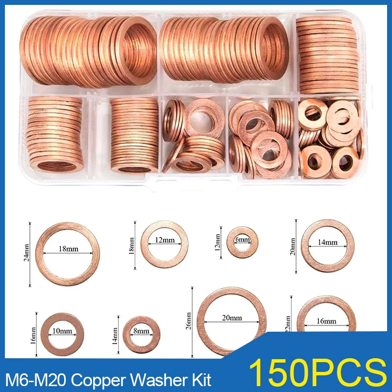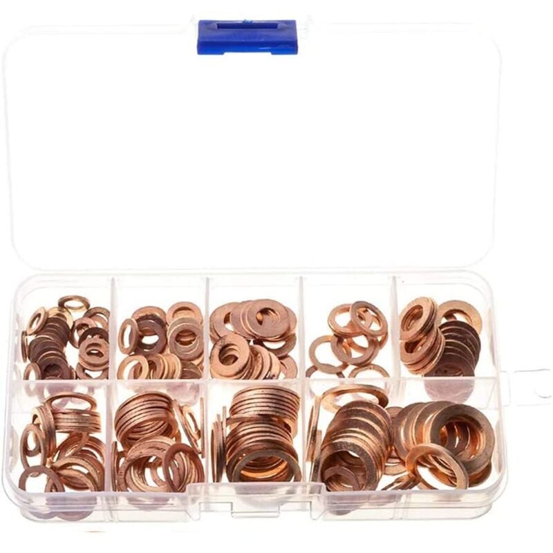 80Pcs, Joint Cuivre, Rondelle Laiton, Rondelle Cuivre, Joint Cuivre TLCS : Rondelle joint cuivre MG Triumph 500464, pièces détachées pour... Lot 100 Joints Multi-tailles Lot De 200 Joints De Bouchon De Vidange D'huile, 9 Tailles En Cuivre Rouge, Rondelle D'écrasement De Bouchon De Vidange Rondelle D'étanchéité Plate, Bagues D' étanchéité, Ensemble De Joints Protection Fuite Moteur Matériau : Cuivre Couleur : Cuivre Quantité : 100 Contenu de la boîte : -100 rondelles pour bouchon d'huile Avantages : -Matériau : Fabriqué en cuivre de haute qualité, il offre une excellente conductivité et une bonne étanchéité. [Fonction du produit] : Le joint de bouchon d'huile assure l'étanchéité et l'étanchéité du bouchon, protège le moteur des dommages, offre une grande durabilité et est réutilisable. RONDELLE CUIVRE VOITURE Vidange Boulon écrasement Bouchon d'huile Joint... -Application : Convient à la plupart des réparations automobiles. [Facile à utiliser] : Facile à utiliser, il réduit la chaleur et les frottements générés lors du serrage, prévient les fuites et le desserrage, et résiste efficacement à la corrosion et à l'usure. [Large application] : Le joint de bouchon d'huile convient à la plupart des réparations de véhicules, notamment aux bouchons de carter d'huile, aux joints de carburant, aux systèmes hydrauliques, aux équipements électroniques, etc. [Contenu de l'emballage] : Le paquet contient 100 joints de bouchon d'huile, dont 15 M5 x 9 x 1, 15 M6 x 10 x 1, 10 M6 x 12 x 1, 10 M8 x 12 x 1, 10 M8 x 14 x 1, 10 M10 x 14 x 1, 10 M12 x 16 x 1, 10 12 x 12 x 18 x 1,5, 10 M14 x 18 x 1., Équipé d'une boîte de rangement, facile à ranger et à transporter.