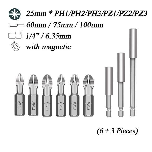 Acier au chrome vanadium traité thermiquement pour usage ordinaire et impact. Queue Hexagonale Embouts De Tournevis Bosch | Double Fonction S1.2x6.5/PZ1/PZ2/PZ3 | Lot De 3 Accessoire Visseuse Qualité Dimensions : 1/4 3/8 1/2 Les kits d'extension de forets hexagonaux en trois pièces sont conçus pour répondre à une variété de besoins et peuvent être fixés en toute sécurité dans les mandrins de perceuse ou les tournevis à main., Matériau : alliage. Accessoire Bricolage Perceuse Jeu De 3 Embouts De Tournevis Hexagonaux 8 Mm - Tige Embout Hexagonal En Bois La boule à ressort assure un maintien sûr de la prise, de sorte que la douille peut être accrochée et ne glisse pas. Type : tige de raccordement Couleur : bleu/rouge/jaune. Lot De 8 Embouts Hexagonal Tournevis Bit Set, Embout De Vissage... La tige hexagonale à deux dents est spécialement usinée pour un montage sécurisé dans les disques portables, perceuses ou clés à choc. 1 adaptateur de prise (1/4 à douille 3/8). Tige hexagonale 1/4 facile à utiliser, à changement rapide et s'adapte à toutes les perceuses, visseuses à percussion 1/4 et visseuses à main. Remarque: Seul le bas de la partie trou est magnétique, la tige hexagonale n’est PAS magnétique Contenu : 1 adaptateur de prise (1/4 à douille 1/4). (1/4 arbre hexagonal à 1/2 douille), longueur env., 72 mm. 1 adaptateur de prise (1/4 à douille 1/2). Caractéristiques : Produit de qualité supérieure. La dureté élevée garantit une longue durée de vie avec un couple dur et n'endommage pas ou ne rouille pas les structures lourdes, ce qui le rend compatible avec les plus puissantes perceuses à percussion.