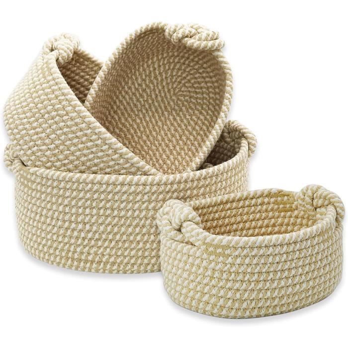 Retrouvez facilement vos affaires et profitez d'un environnement plus rangé et apaisant. La texture tissée apporte une ambiance chaleureuse et naturelle à n'importe quelle pièce. Leur design polyvalent s'adapte à tous les styles de décoration, du contemporain au rustique. Il permet de maintenir l'ordre sur votre bureau, votre table de nuit, dans votre salle de bain ou sur une étagère. Pratiques et élégants, ces petits paniers de rangement sont parfaits pour garder vos espaces ordonnés tout en ajoutant une touche de charme artisanal à votre décor. Petit panier ovale est fabriqué à partir de corde de coton résistante et souple, tressée à la main pour un rendu unique et artisanal. La texture naturelle et les finitions soignées apportent une touche d'authenticité et de chaleur à votre intérieur La qualité de la fabrication et la solidité des matériaux garantissent une bonne tenue dans le temps, sans se déformer ni s'effilocher. Son aspect neutre et naturel s'harmonise avec tous les styles de décoration, qu'il soit moderne, rustique ou scandinave. Découvrez élégants petits paniers tressés, parfaits pour ajouter une touche décorative et fonctionnelle à votre intérieur. Panier Tressé Blanc 30x17x9cm Lot De 3 Paniers Décoratifs De Rangement Jarana, Coton, Blanc, 25x35x13 Cm Panier Rangement Tressé Petits paniers de rangement, parfaits pour organiser de petits objets · Le panier tissé en cordes de coton convient pour une chambre d'enfant, une salle de jeux... Conçu pour un usage quotidien, ce panier en corde de coton est facile à entretenir. La texture de la corde apporte une dimension tactile et visuelle agréable, renforçant l'ambiance cosy de votre intérieur. Au-delà de sa fonction pratique, ce panier tressé est un véritable accessoire de décoration. Un produit fiable qui conservera son bel aspect et son utilité au fil des années. NaturalCozy Lot de 3 paniers de rangement décoratifs bohèmes - Paniers Forme et fonction se marient parfaitement pour un résultat esthétique. La texture naturelle et les finitions soignées apportent une touche d'authenticité et de chaleur à votre intérieur. Ce matériau durable assure une longue durée de vie et résiste à l'usure quotidienne. Petit panier ovale est fabriqué à partir de corde de coton résistante et souple, tressée à la main pour un rendu unique et artisanal.