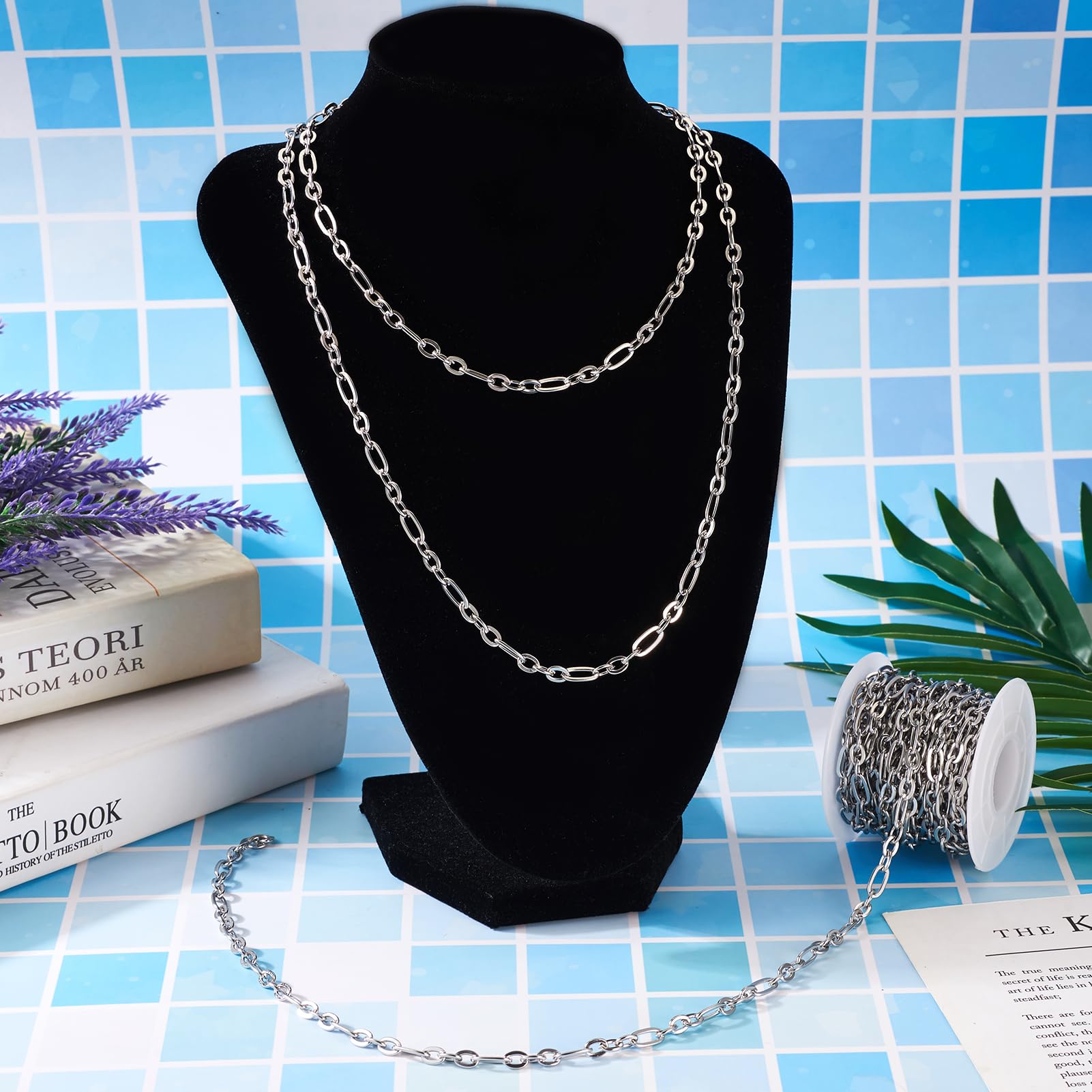Chaine Bracelet Acier Inoxydable UNICRAFTALE Chaîne à Maillons D Chaînes Acier Inoxydable Pandahall Lot De 3 Rouleaux De Chaînes En Acier Inoxydable Chaine Acier Inoxydable 140pcs - Anneaux brisés ovales 8x5mm - acier inoxydable Contenu de l'emballage : il y a 3 rouleaux de chaînes en acier inoxydable de 5 m, y compris une chaîne trombone, une chaîne à câble et une chaîne gourmette, 25 fermoirs mousquetons et 50 anneaux ouverts, idéal pour vos bijoux et travaux manuels Dimensions : environ 6 mm de large, maillon : 9 x 6 x 2 mm, 10 m/rouleau. Matériau : la chaîne est fabriquée en acier inoxydable 304 de bonne qualité, solide... Large application : nos chaînes en acier inoxydable pour femme peuvent être largement utilisées pour la fabrication de bracelets, colliers, bracelets de cheville, ras-de-cou, chaînes de taille, porte-clés, pendentifs de sac, téléphone, accessoires de lunettes de soleil, chaînes de pull Matériau de haute qualité : la chaîne torsadée en métal pour la fabrication de bijoux est fabriquée en acier inoxydable de qualité, ayant l'avantage d'être robuste, difficile à décolorer, à déformer ou à casser, confortable au toucher