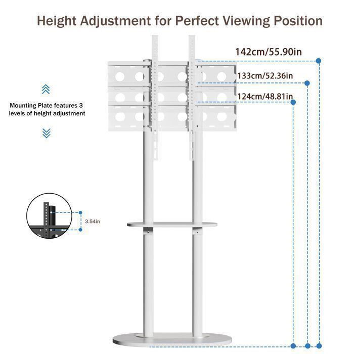unho support tv Vidéo de marchand FITUEYES Support TV sur Pied pour Téléviseurs de 32 à 60 Pouces,Pied TV Les pieds inclinés assurent un excellent maintien pour des téléviseurs lourds, jusqu’à 50 kg, avec une résistance équivalente au poids de deux adultes. Support Pour Tv Sur Pied Pour Téléviseurs De 32 à 60 Pouces - Support Pivotant De TV Réglable En Support TV Sur Pied Spécifications Tailles de TV compatibles : 40, 45, 50, 55, 65, 70, 75, 80, 85, 86 pouces Norme VESA : 200 x 200, 300 x 200, 300 x 300, 400 x 300, 400 x 400, 600 x 400 mm Dimensions du produit (L x H) : 90 x 155 cm Hauteur réglable de 160 cm à 190 cm Convient aux téléviseurs plats de 40 à 86 pouces. Support TV sur Pied de 40 à 86 Pouces : Meuble de Télévision Jusqu'à 50kg pour Télé Écran LED OLED LCF Support Télévisateur Hauteur Réglable160-190cm Max VESA 600x400mm : : High-TechConcentré tous efforts à la décoration de l'intérieure et l'ameublement depuis dix ans, déterminé à devenir une équipe internationale qui comprend au mieux les besoins des clients. Nous... Inclus : matériel complet et notice claire pour un montage rapide et sans effort. Livré avec attaches pour organiser les câbles, garantissant un espace propre et sans encombrement. Compatibilité Universelle – Support TV compatible avec les normes VESA 200×200, 300×200, 300×300, 400×200, 400×300, 400×400 et 600×400 mm Hauteur Réglable et Gestion des Câbles – Pied TV réglable de 160 à 190 cm pour un angle de vue optimal et un confort visuel amélioré. Ce meuble TV supporte jusqu’à 50 kg, idéal pour salon, chambre, bureau, salle de réunion ou espace commercial. Design Trapézoïdal Stable et Élégant – Fixation au sol avec cadre trapézoïdal en acier laminé à froid et pieds en bois massif d’hévéa. Rangement des Câbles Deux attaches-câbles sont offertes pour vous aider à organiser les câbles encombrants, tout en préservant l’esthétique élégante de votre espace. Polyvalence et Facilité d’Installation – Ce support TV universel s’adapte au home cinéma comme aux usages professionnels.