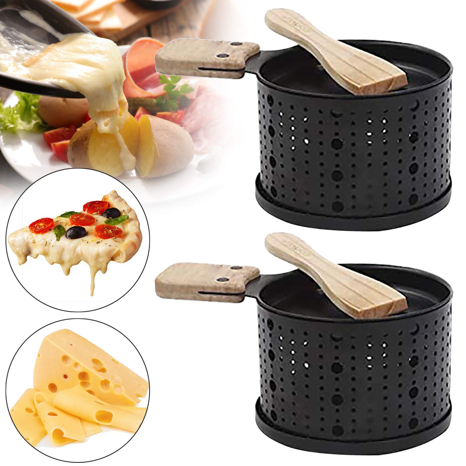 Raclette à la bougie pour 2 personnes – appareil à raclette sans électricité – bougies à réchaud, poêlons et spatules inclus – idéale pour balcon, camping et déplacements - Et votre maison Raclette individuelle à la bougie Yeti Appareil à Raclette Ipow Lot De 4 Appareil Raclette Bougie à Revêtement Antiadhésif Raclette Sans électricité Portable CHAQUE PERSONNE GÈRE SA CUISSON ET SON DOSAGE UNITAIREMENT: Vous pouvez vous faire une soirée raclette seul, en amoureux, en famille ou entre amis. ipow appareil raclette à la bougie est parfait pour une petite raclette en intérieur comme à table, devant télé, au bureau, dans le fourgon aménagé/camping cars/vans; ou en extérieur, tels que dans le jardin, sur la plage, en bivouac, au sommet des pistes après la randonnée en raquettes. Promo Appareil à Raclette à La Bougie, Lot De 4 Repose Poêlon En Bois... AUCUNE CONSOMMATION ÉLECTRIQUE POUR UNE RACLETTE N’IMPORTE OU: Fini le fil électrique qui gêne pour passer,fini les odeurs de raclette et la chaleur étouffante dans toute la maison. Coupelle à raclette de migonne taille(14,08*9,6*12,5cm) prend le minimum de place dans les placards et elle est pratique pour une petite raclette improvisée vite. Nettoyez avec une éponge sans grattoir afin de ne pas endommager le revêtement; attendre que les bougies se solidifient avant de bouger les poelons pour éviter que la cire ne s'écoule dans le réceptacle, ce qui rendrait le nettoyage plus difficile. REMARQUE: Ne touchez pas directement les parties métalliques avec vos mains pendant l'utilisation afin d'éviter les brûlures.